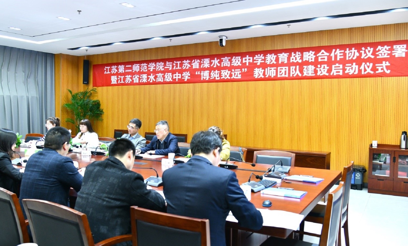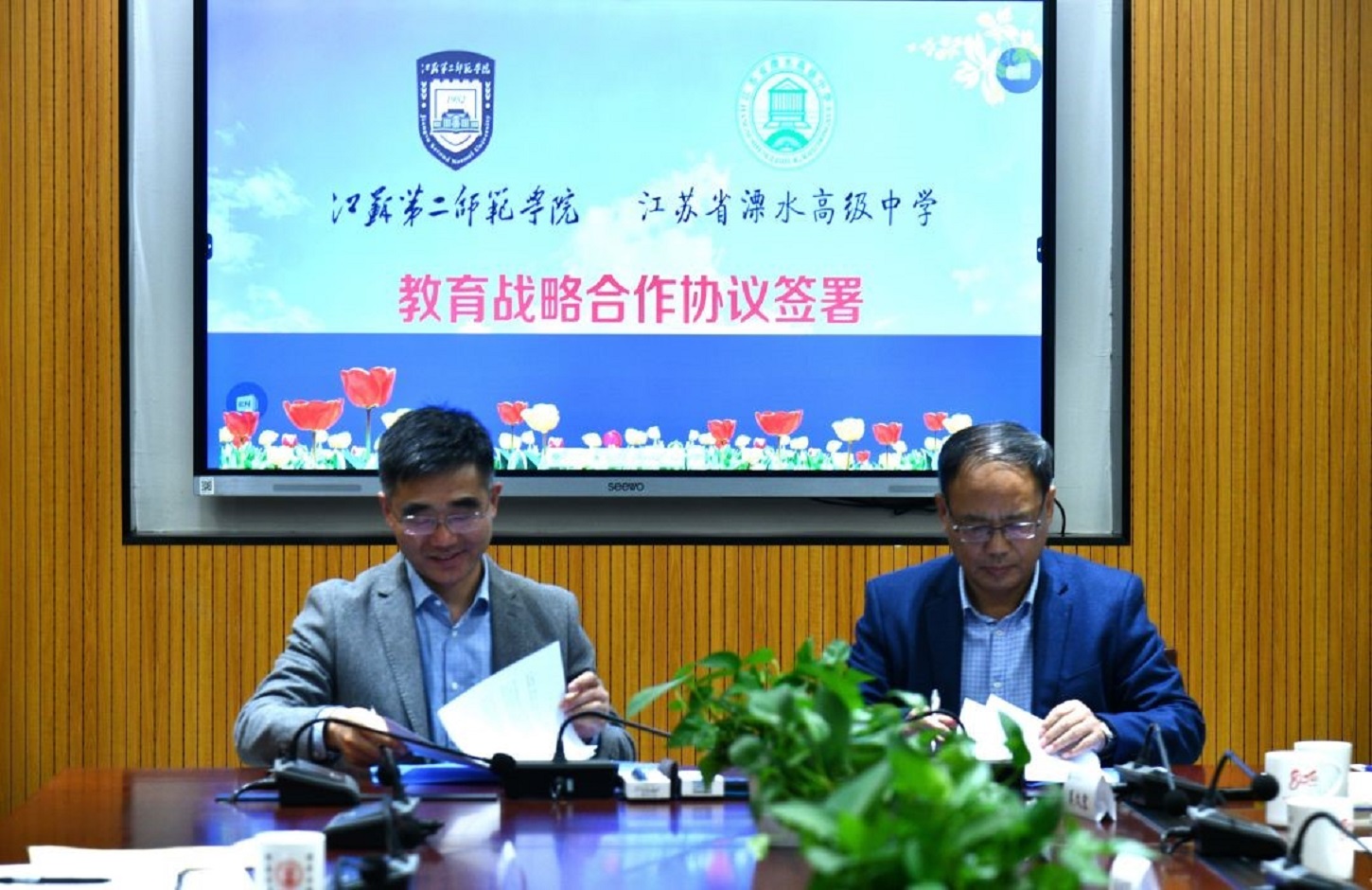 3月15日,我校与江苏省溧水高级中学签署战略合作协议。校长徐国华、副校长陈金如,溧水区教育党工委书记、局长肖霞,溧水区人大常委会副主任、省溧中校长杨四洲,教务处、质评处处长陈蓓,发展办副主任丁媛出席签约仪式。