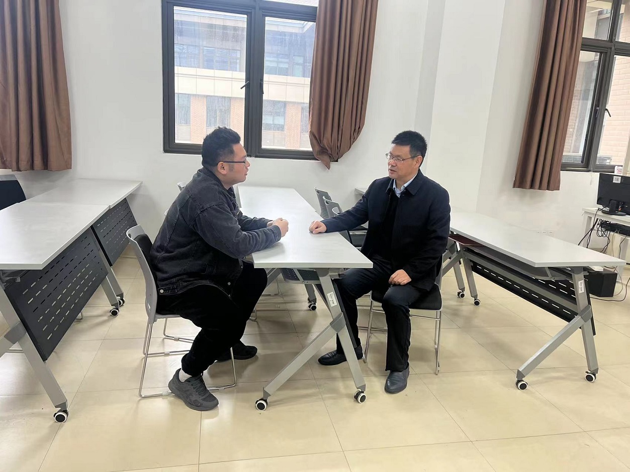在第二阶段中,刘贵友面对面与学生交流,细致耐心的询问了同学们在学习生活中存在的问题、遇到的困难及对于学校未来发展的期盼等,并着重就“大学生活”、“专业技能”、“未来职业道路规划”三方面为大家提出了建设性的意见。最后,刘贵友与联系学生左佳成同学进行了1+1谈话,并以“幸福是靠自己奋斗出来的”启示其要敢于拼搏,发扬奋斗精神,不让自己的人生留有遗憾。