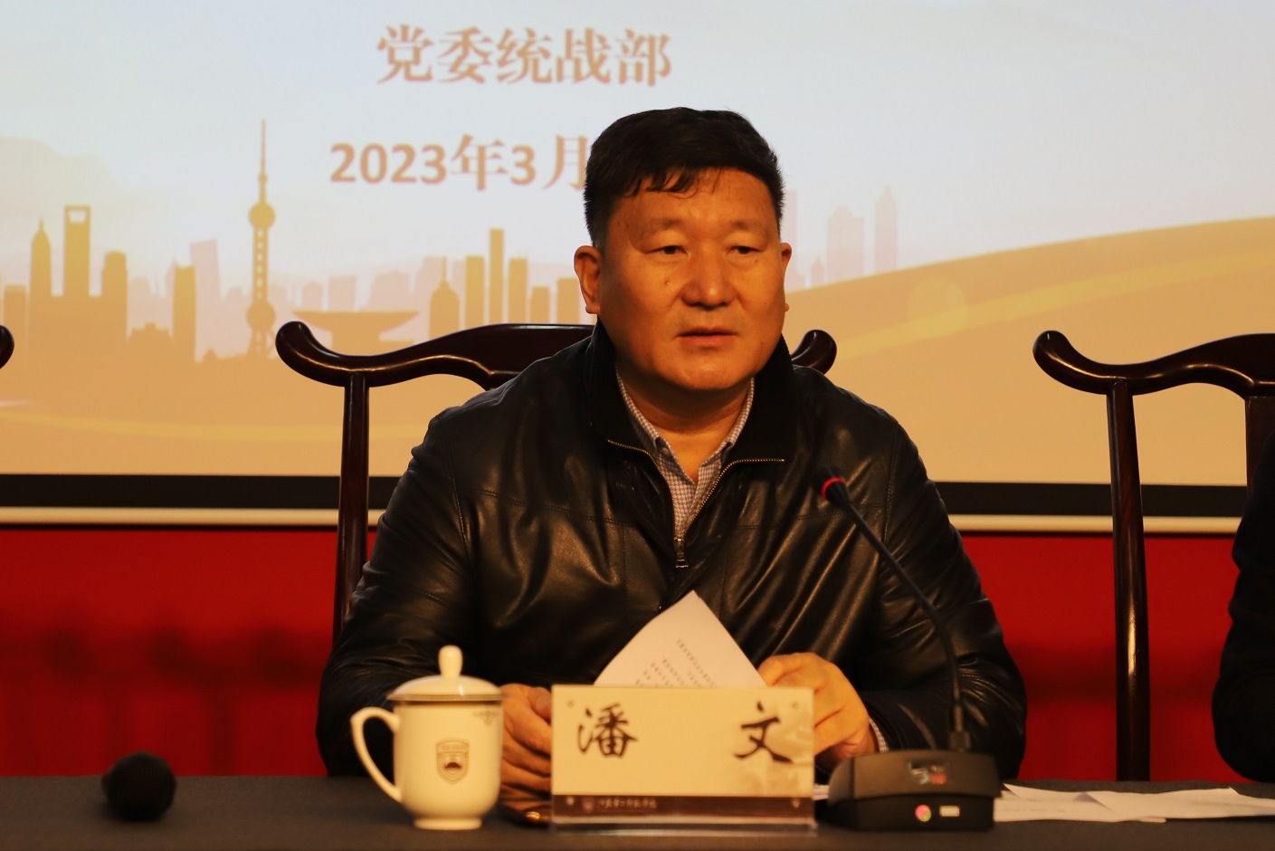 3月22日下午,我校在石湫校区尚美楼“同心˙传承”教育实践基地召开统一战线工作会议。党委副书记潘文,党委常委、党委组织部部长、党委统战部部长张其飞,各民主党派、统战团体代表参加会议。会议由张其飞主持。