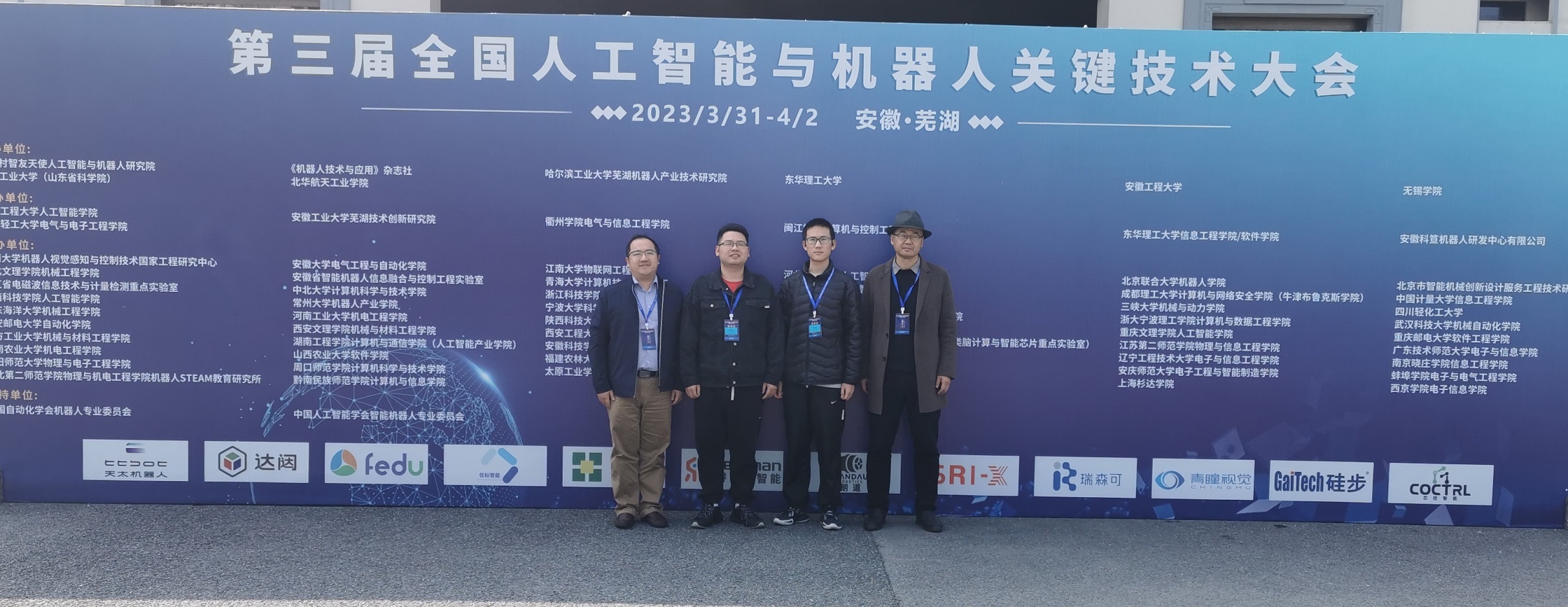 3月31日-4月2日,由中国自动化学会机器人专业委员会、中国人工智能学会智能机器人专业委员会指导,中关村智友天使人工智能与机器人研究院、《机器人技术与应用》杂志社、哈尔滨工业大学芜湖机器人产业技术研究院主办,安徽大学电气工程与自动化学院、江南大学物联网工程学院、江苏第二师范学院物信学院等协办的第三届全国人工智能与机器人关键技术大会在安徽芜湖召开。物信学院陈青、顾晓东老师及校机器人队学生代表左家成、梅轩宁参加了会议。