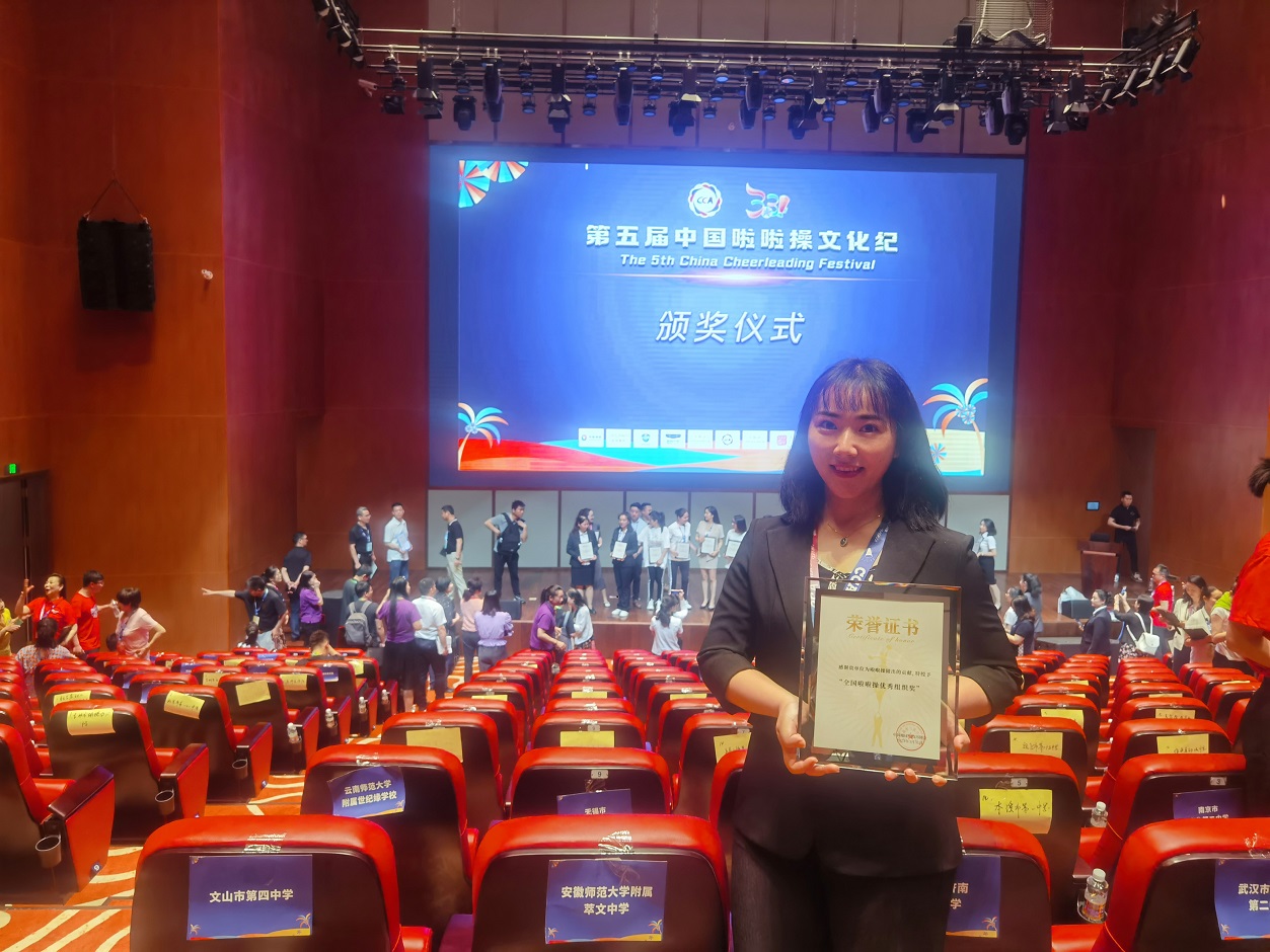 3月30日-4月2日,由国家体育总局体操运动管理中心、中国蹦床与技巧协会主办的第五届中国啦啦操文化纪在海南儋州海花岛国际会展中心隆重开幕,我校啦啦操队在去年的省级、全国赛事中表现出色,屡获大奖,此次活动中,被授予全国啦啦操优秀组织奖。