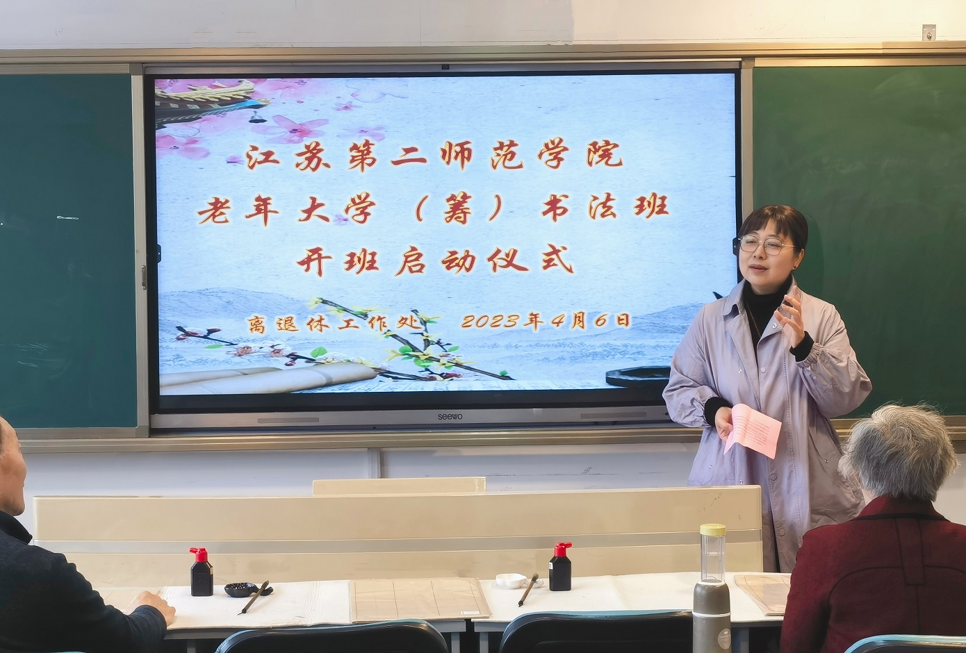 为传承中华民族传统文化,丰富退休教职工精神文化生活,进一步推进我校老年大学筹建工作,4月6日,离退休工作处在草场门校区举行了校老年大学(筹)书法班开班启动仪式。原校正院级调研员、书法班特邀授课教师胡相峰,退教协理事长曹亚民,离退休工作处全体人员和书法班学员参加了开班启动仪式。仪式由离退休工作处处长冯颖主持。