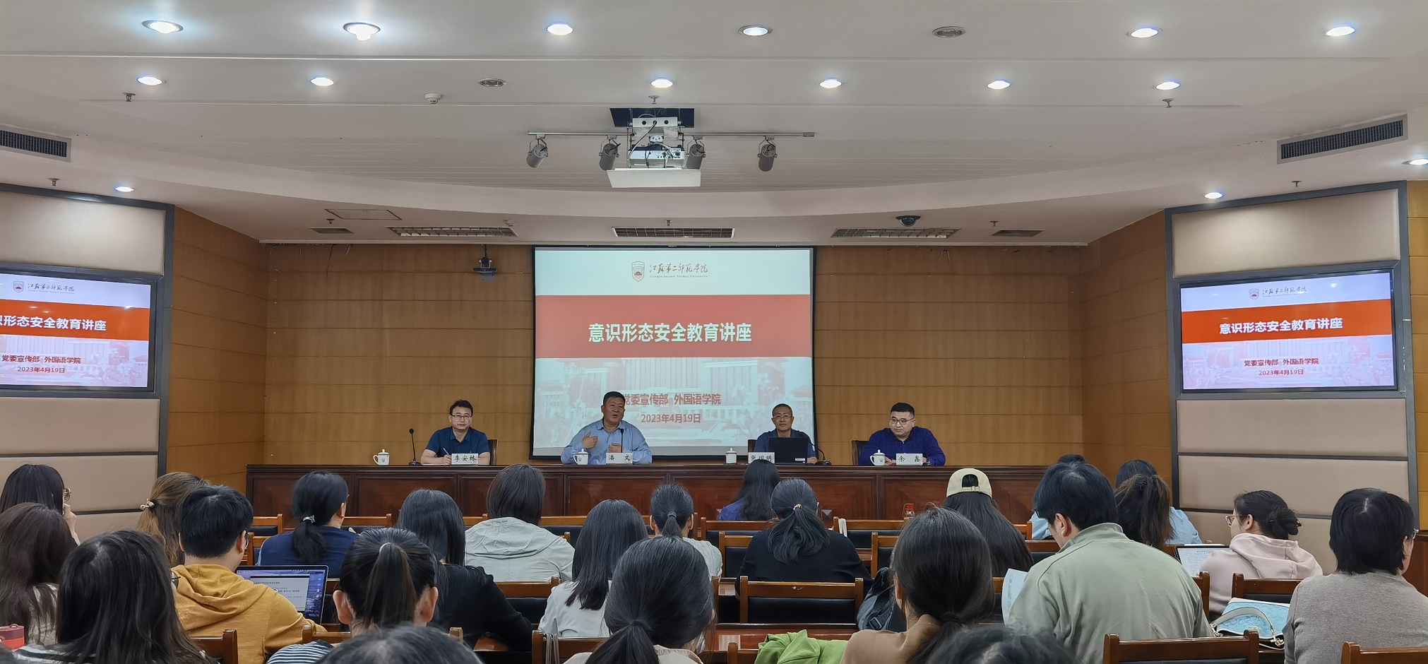4月19日下午,党委宣传部、外国语学院于草场门校区教科研楼511会议室共同举办意识形态专题讲座,南京师范大学党建研究中心主任张明明研究员受邀主讲,党委副书记潘文,党委常委、党委宣传部部长李安林,外国语学院全体教职员工出席了讲座。讲座由外国语学院党总支书记余鑫主持。