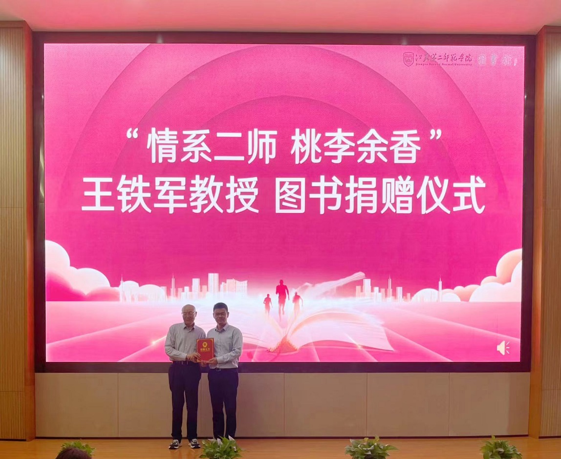 之后,举行了“情系二师,桃李余香”王铁军教授图书捐赠仪式。王铁军教授是我校知名教育专家,退休多年仍情系二师,将毕生收藏的千余册图书捐献给图书馆。王铁军在捐赠仪式上深情回顾了自己的工作生涯,也教导同学们要将读书作为伴随终身的习惯。刘贵友为其颁发了捐赠证书。