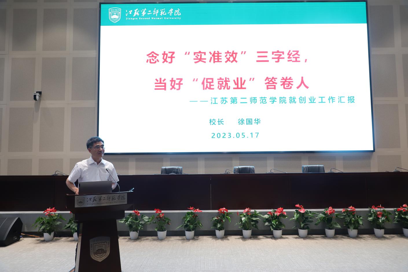 5月17日上午,江苏省2023届普通高校毕业生就业工作专项督导组来我校实地督查就业工作。江苏省督学、省人大农业农村委员会委员、南京农业大学原党委书记陈利根担任组长,南京信息工程大学学工处处长李健、扬州工业职业技术学院招就处处长吴涛、省高校招生就业指导服务中心评价服务部副部长周双龙为组员。校长徐国华,党委副书记、副校长刘继红,相关职能部门负责人,二级学院学生工作负责人及毕业班辅导员参加汇报会和督查结果反馈会。会议由刘继红主持。