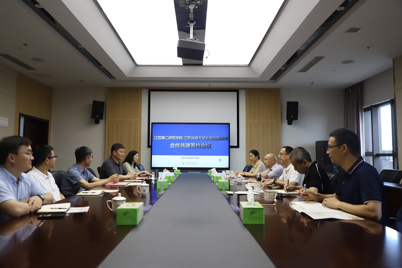 6月19日,江苏第二师范学院与江苏省建文旅发展有限公司(简称“江苏省建文旅”)在石湫校区举行校企合作共建协议签约仪式。江苏第二师范学院校长徐国华,江苏省建文旅董事长谢如洲、副总经理姚帅、曹宏伟,江苏省建文旅办公室主任唐先满、董事长助理夏爱平,江苏第二师范学院机关党委书记、党办院办副主任庞育川,江苏第二师范学院文学院院长姚苏平、副院长陈进武出席签约仪式。仪式由江苏第二师范学院党委副书记潘文主持。