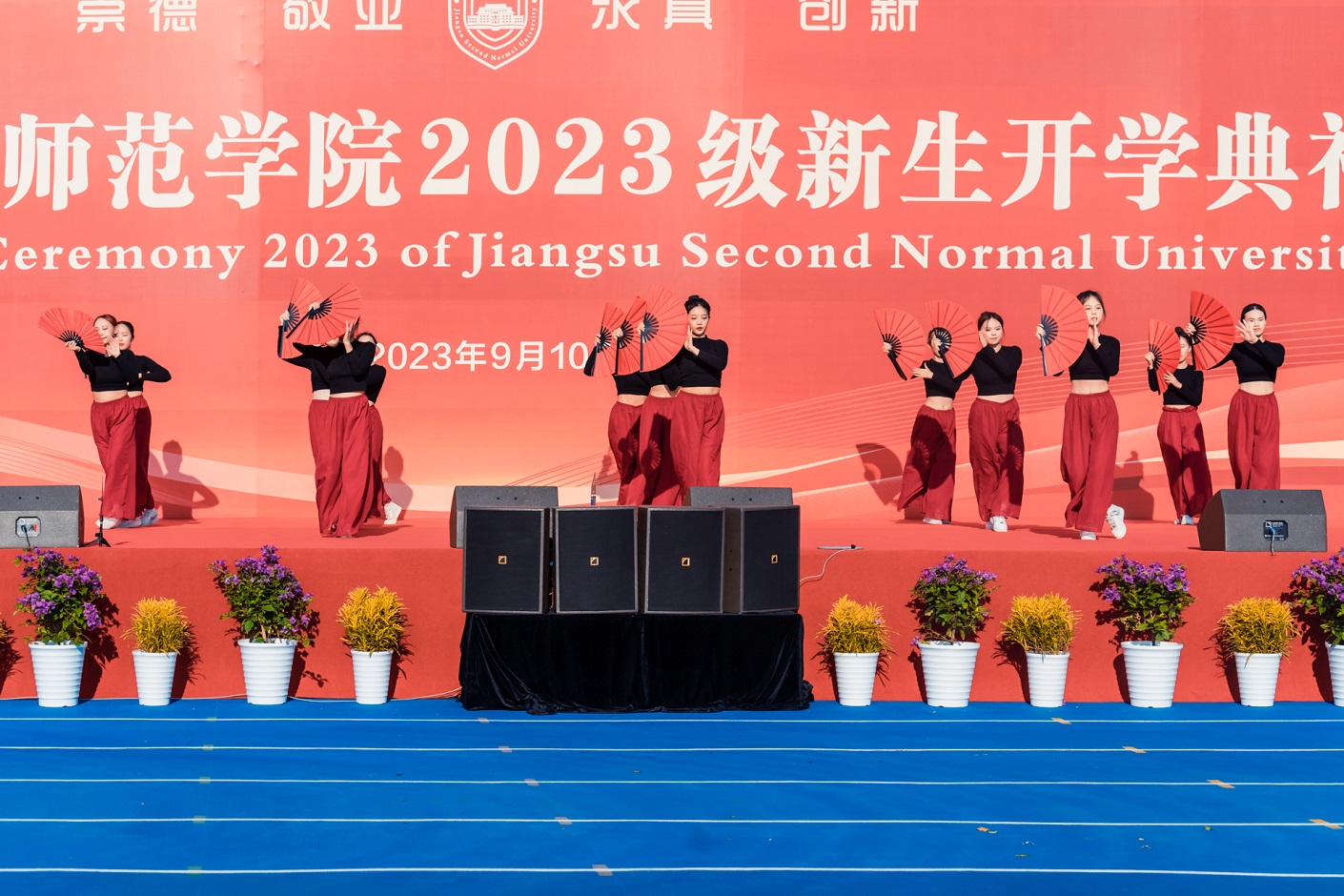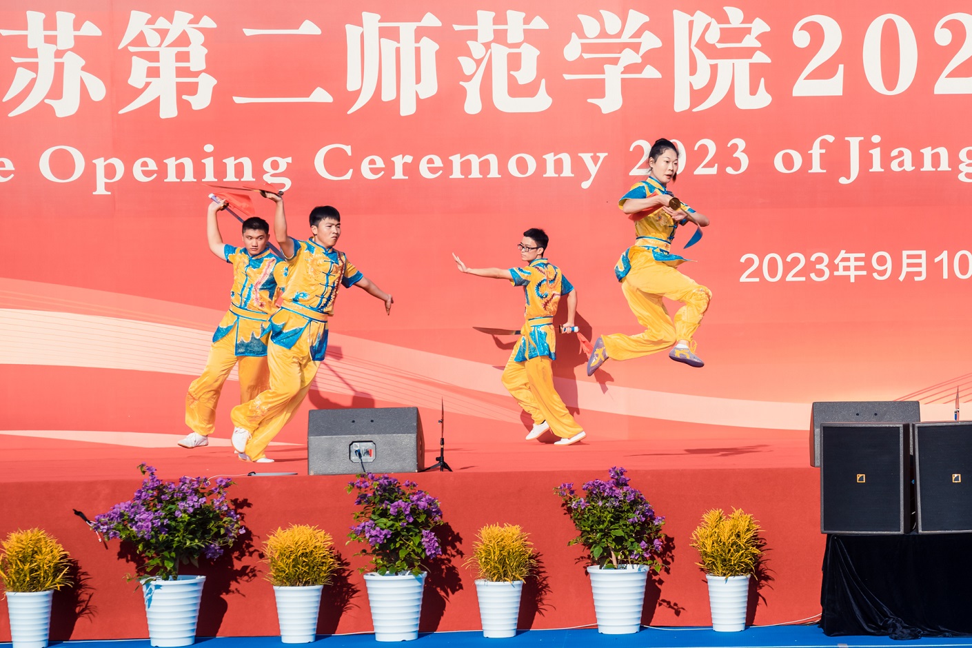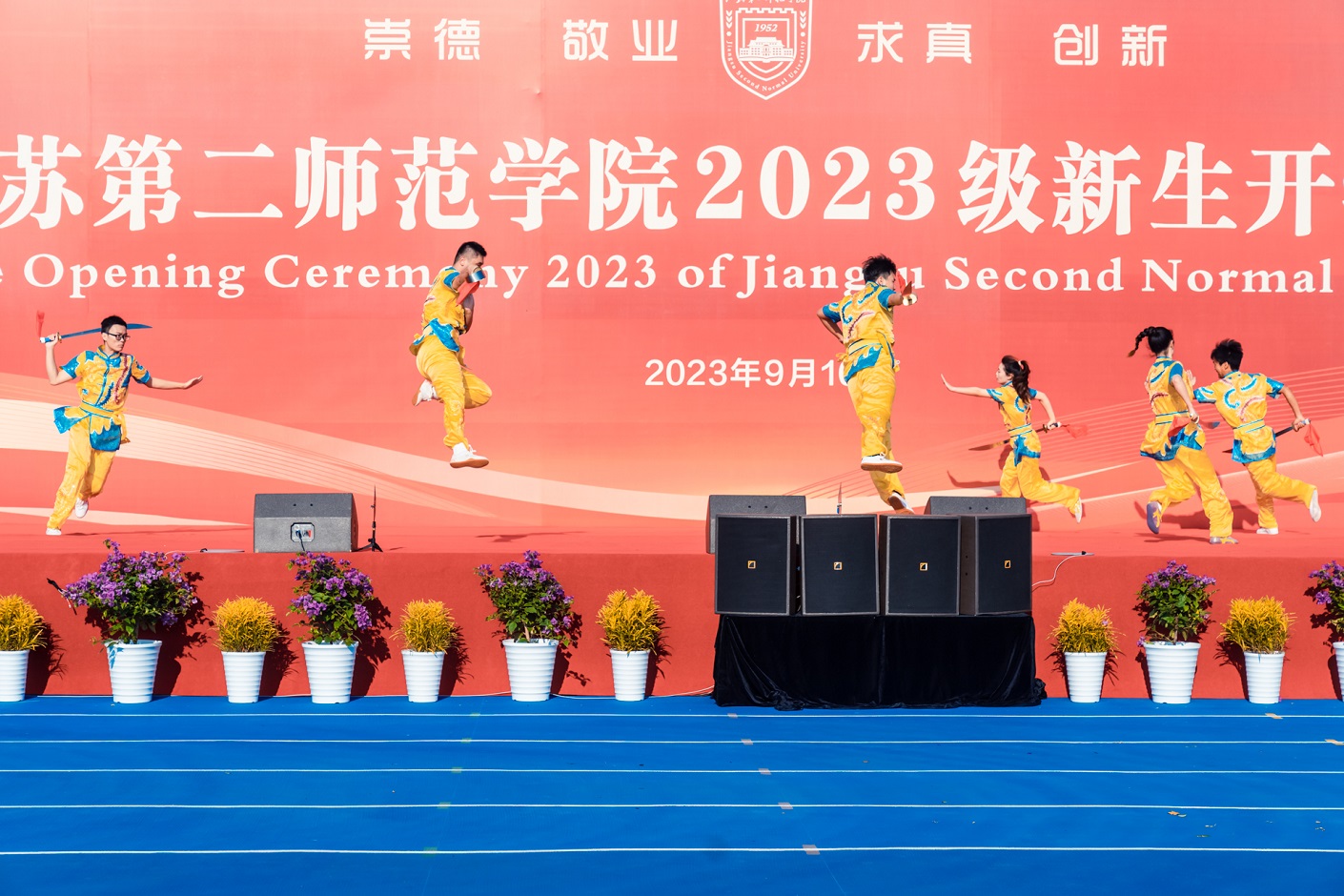 开学典礼在校排舞队、武术队等江苏二师学子的精彩表演中拉开帷幕。