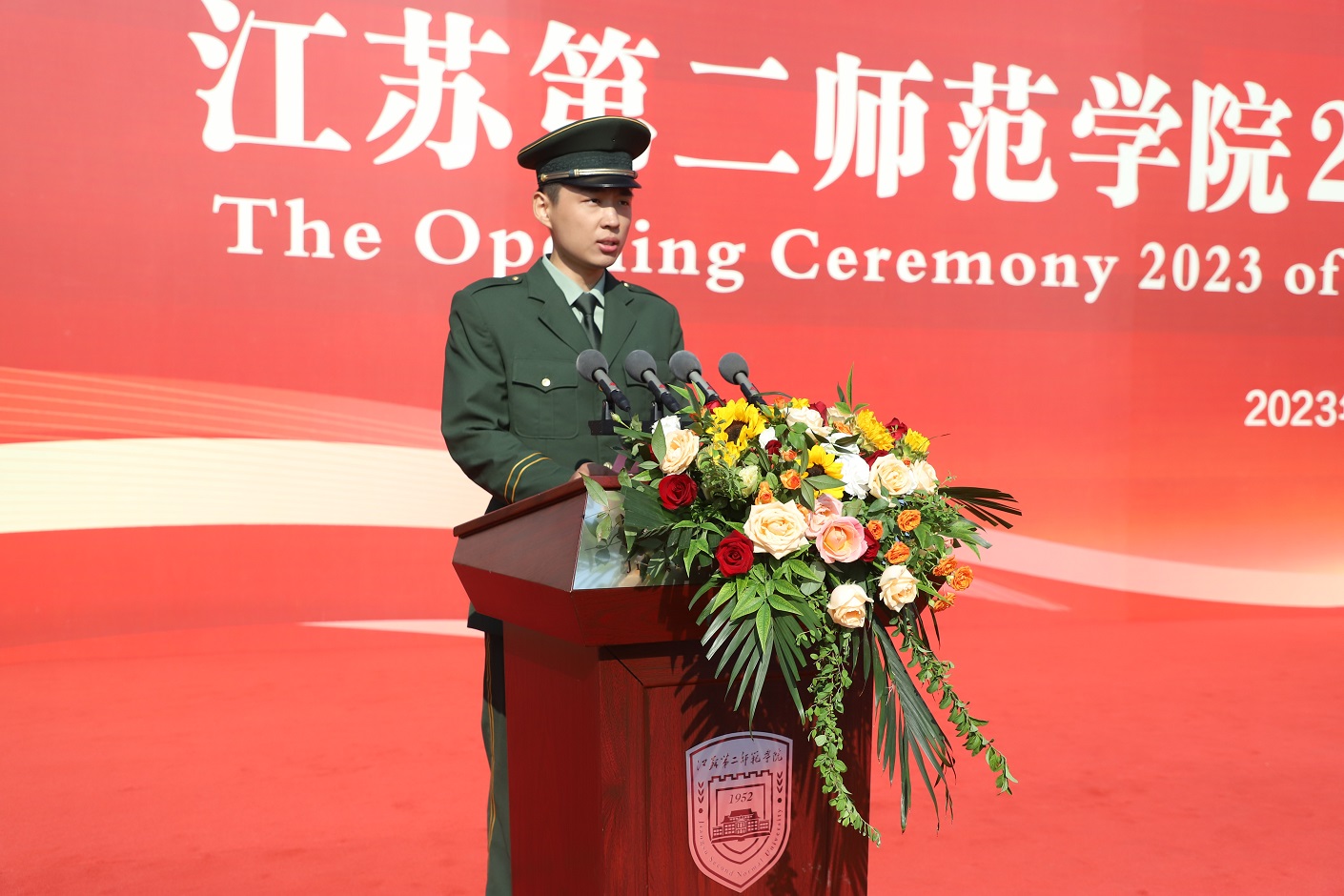 2023级数学与应用数学(师范定向)普本班吴怡涵、2023级生物制药专转本班付思文两位同学作为新生代表发言。他们表示,作为新的江苏二师人,要牢记嘱托,把个人理想同祖国前途和民族命运紧密联系,勤学善思、开拓创新,用奋斗擦亮青春最亮丽的底色。