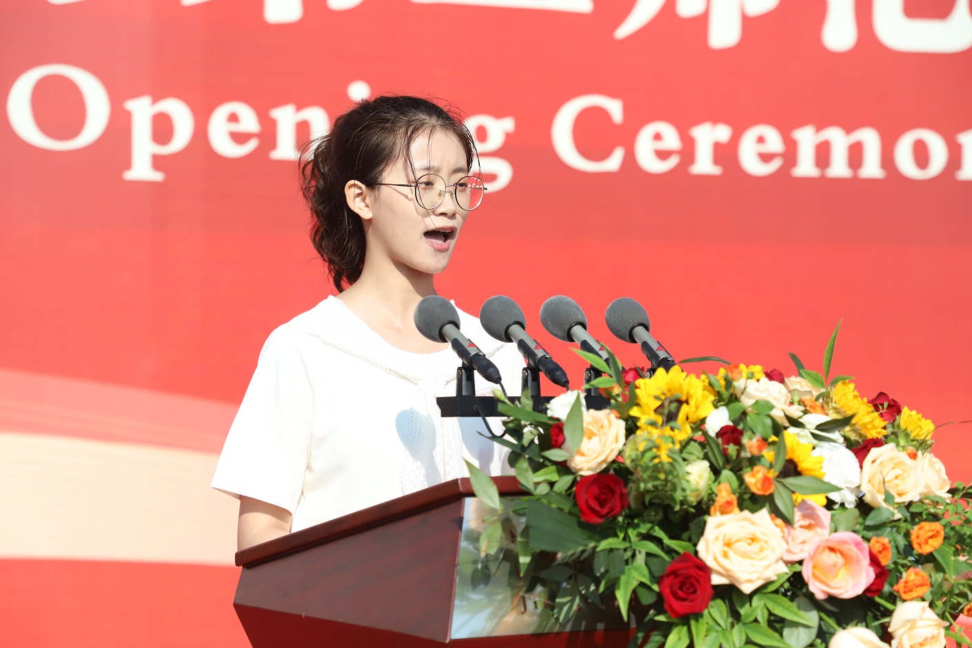 2020级生物科学(师范定向)普本班冯慧琳作为在校生代表发言。她希望学弟学妹们在大学生活中坚定信念、勇于追梦、潜心钻研,夯实知识基础,萃取学术新知,增长本领才干,以青春之我、奋斗之我,为民族复兴铺路架桥,为祖国建设添砖加瓦。