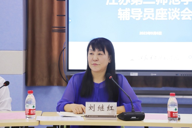 刘继红作总结,她表示辅导员座谈会开得好,希望辅导员们会后按照王书记的要求,在今后的工作中落实立德树人根本任务,要本着高度的责任感,用习近平新时代中国特色社会主义思想铸魂育人,围绕学生、服务学生、关爱学生,强化职业素养和业务能力,切实做到工作务实、管理精准、作风下沉、能力提升,努力提高学生工作在学校人才培养中的贡献度,以实际行动作答“强国有我、二师何为”的时代命题,践行“为党育人、为国育才”的教育使命,为建设高水平有特色的师范学院作出新的更大的贡献。