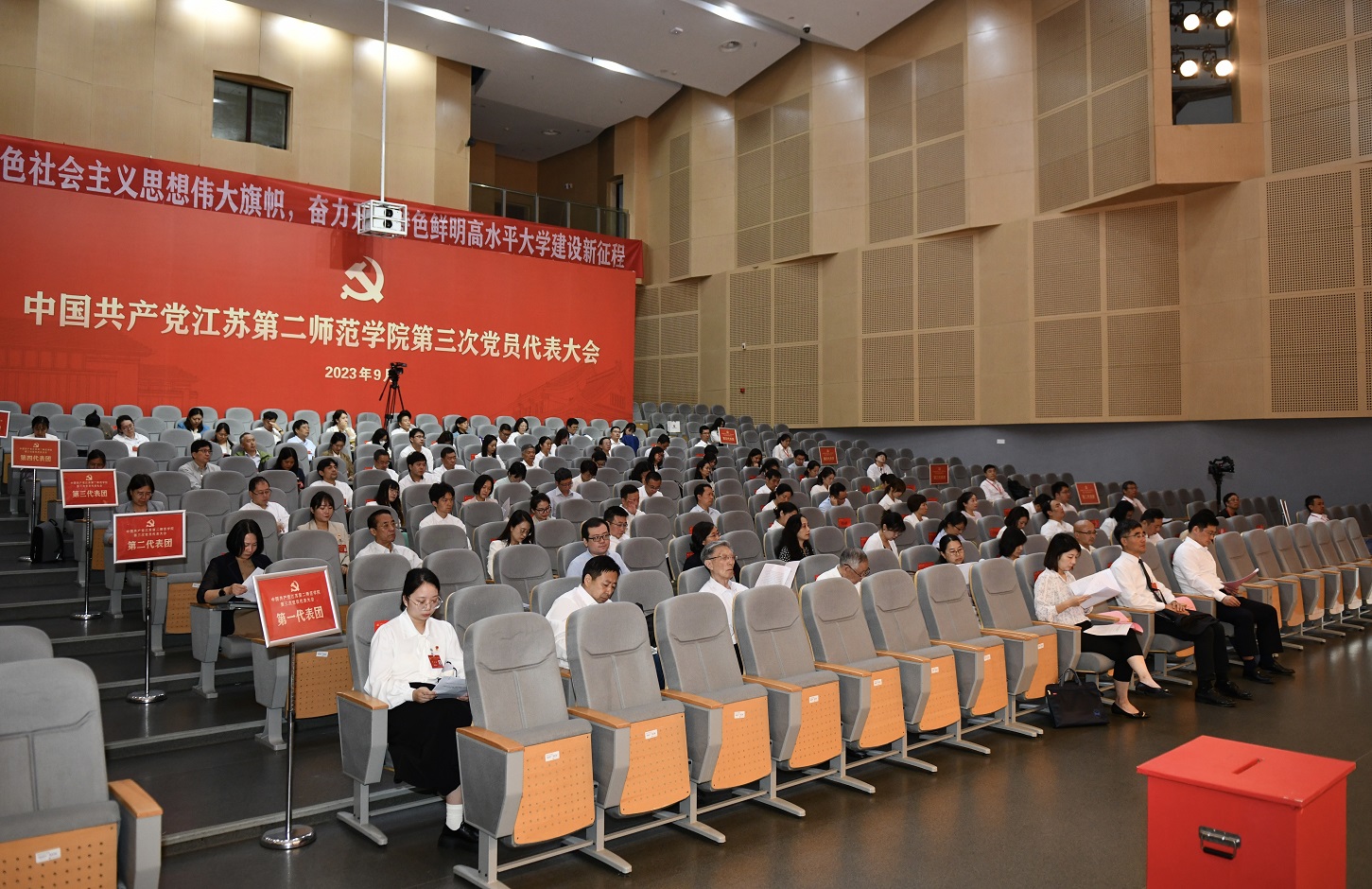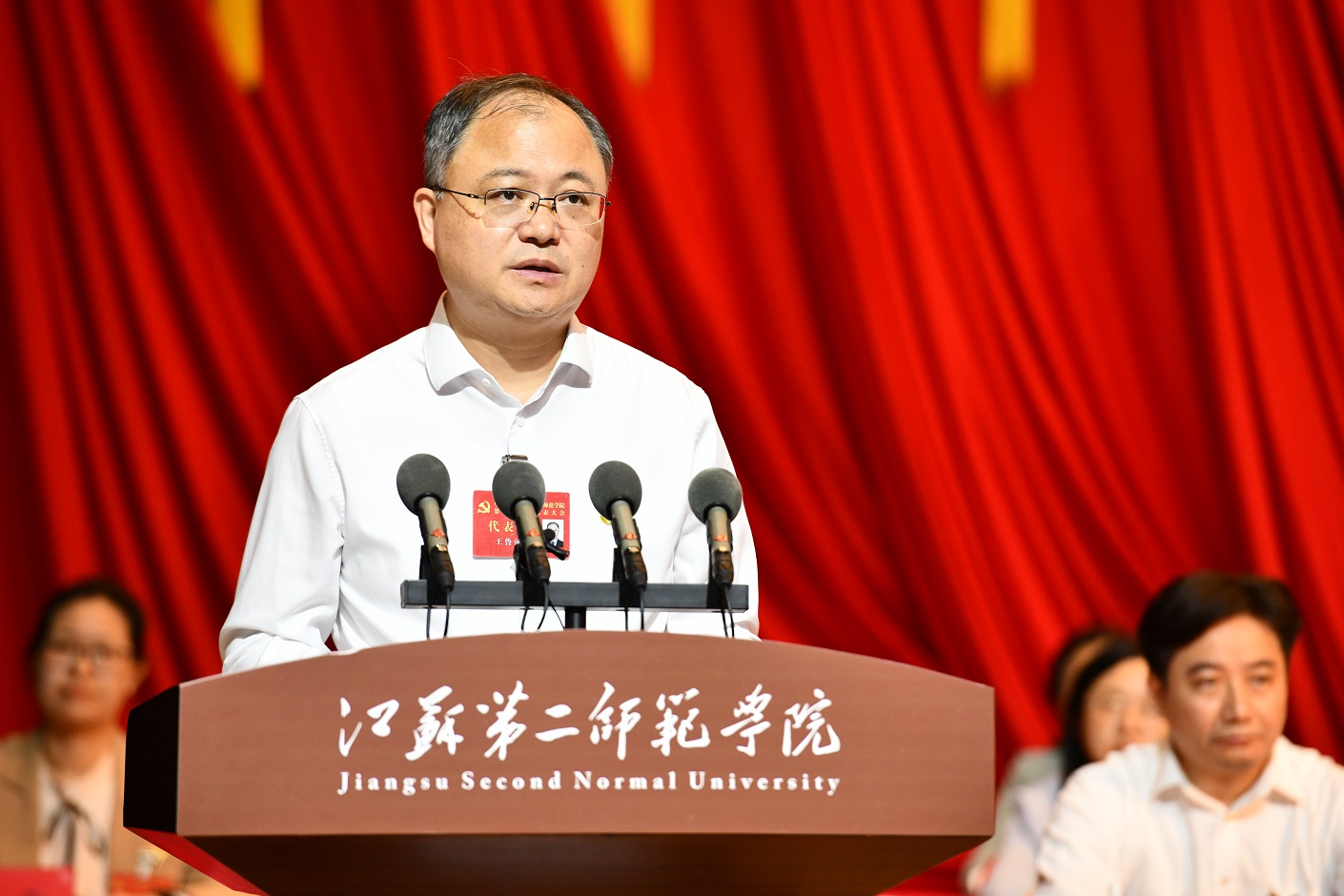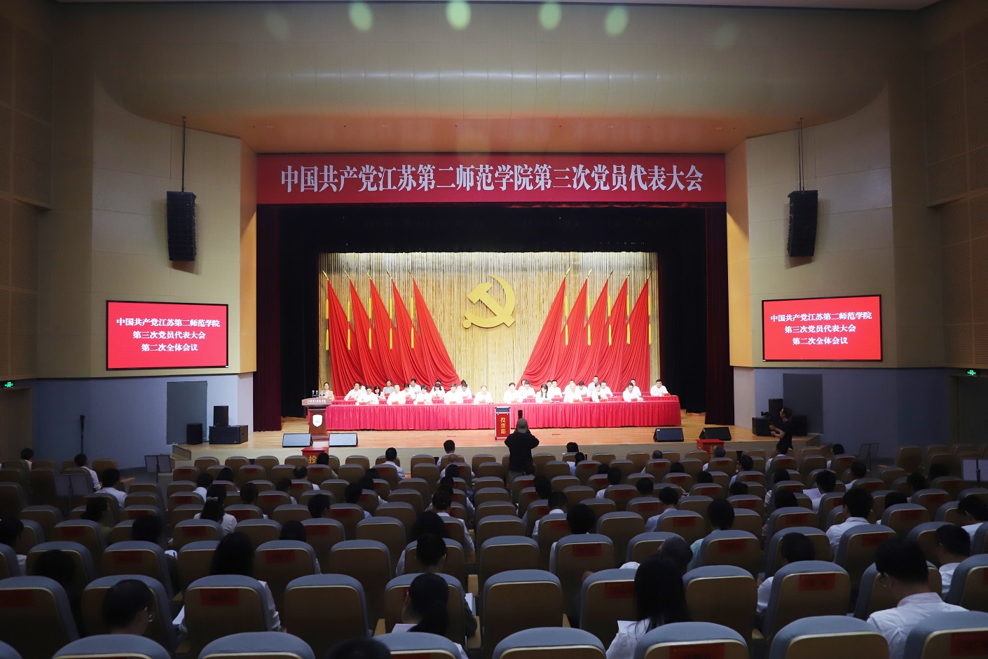 9月26日上午,中国共产党江苏第二师范学院第三次党员代表大会在石湫校区尚美楼胜利闭幕。