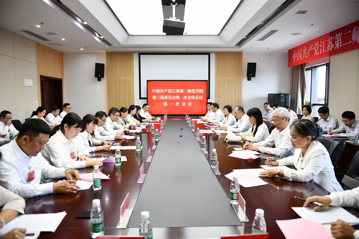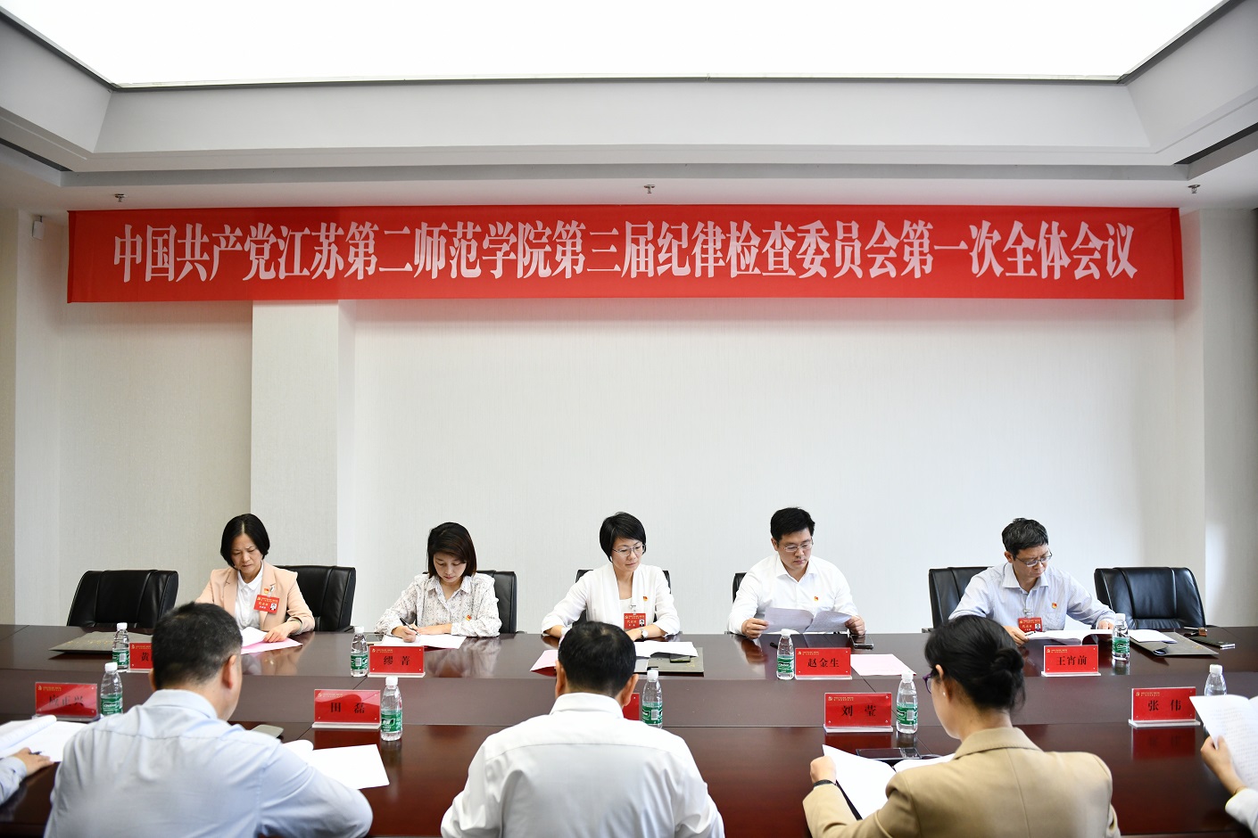 闭幕会后,中国共产党江苏第二师范学院第三届纪律检查委员会第一次全体会议和中国共产党江苏第二师范学院第三届委员会第一次全体会议在石湫校区召开。会议分别选举产生了新一届纪委书记、副书记和新一届党委常委、书记、副书记。