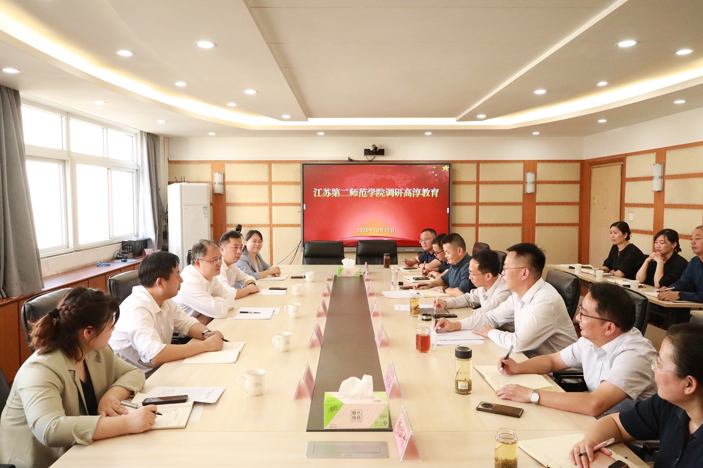 10月17日,党委书记王鲁沛率领发展办和有关学院负责人赴南京市高淳区洽谈教育合作。高淳区副区长邱峰、高淳区教育局局长刘海军、副局长史联盟等出席合作座谈会。