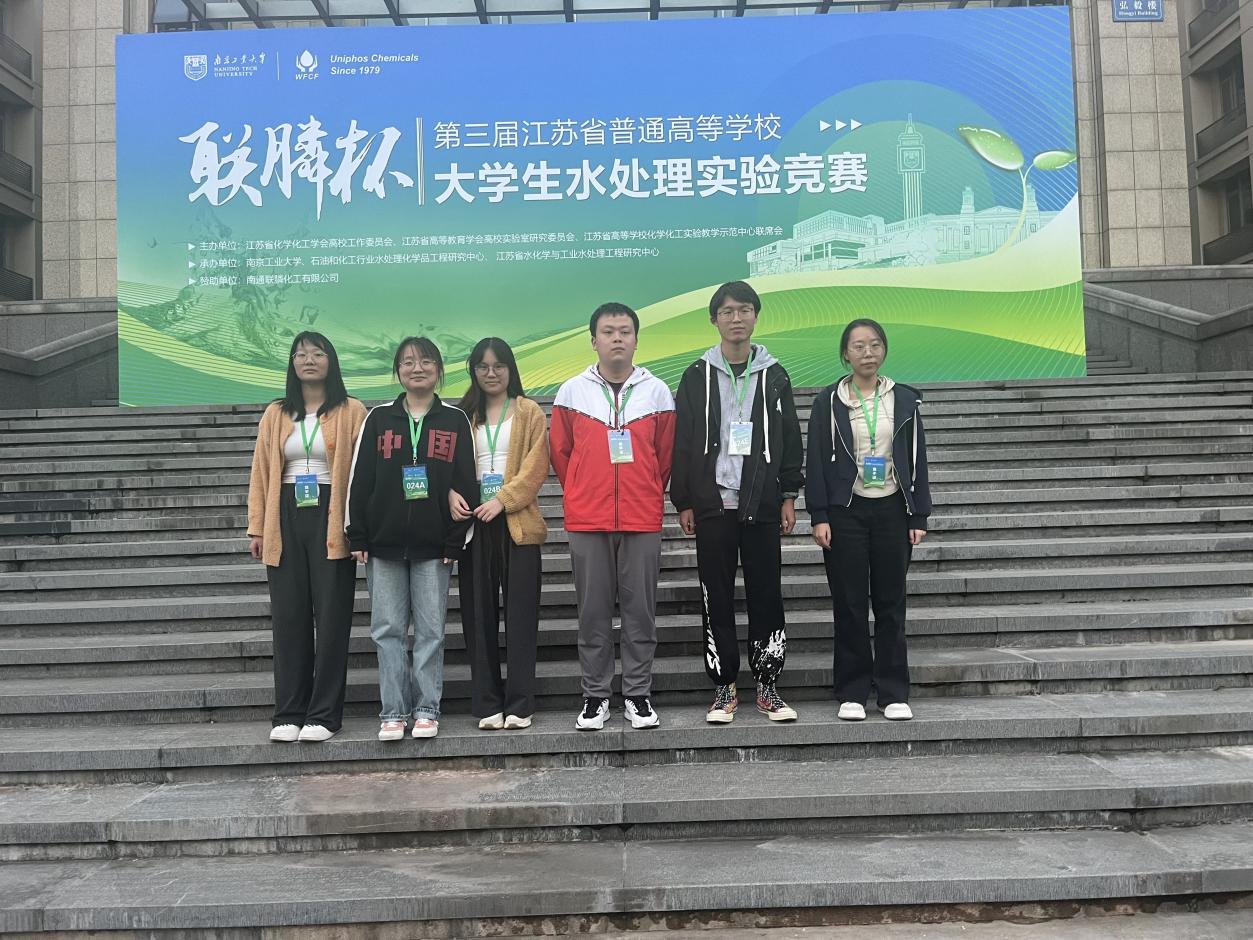 10月20-21日,由江苏省化学化工学会高校工作委员会、江苏省高等教育学会高校实验室研究委员会、江苏省高校化学化工实验教学示范中心联席会共同主办的“联膦杯”第三届江苏省普通高等学校大学生水处理实验竞赛在南京工业大学成功举办。我校生命科学与化学化工学院由杜攀副院长领队,黄余改、矫文美、季益刚和徐文佳四位老师分别指导了两支队伍,共6名本科生代表学校参赛并取得佳绩。