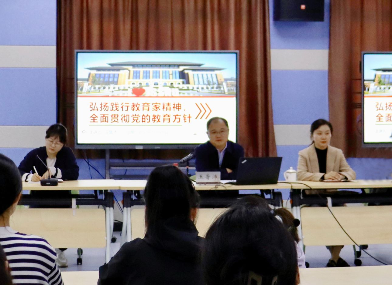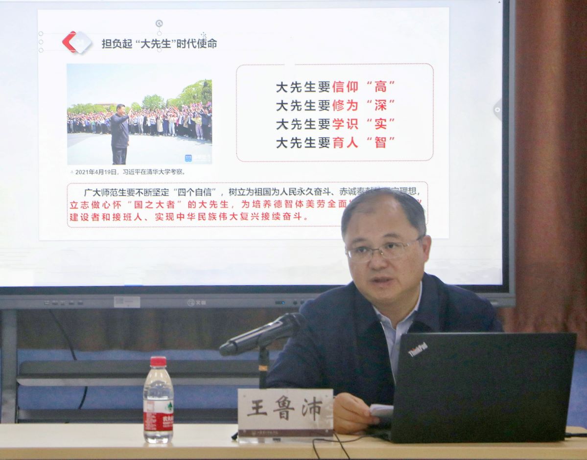 王鲁沛结合学习贯彻习近平总书记关于教育的重要论述和教师节重要指示精神,就贯彻落实党的教育方针、弘扬践行教育家精神、立志做新时代“大先生”等话题,与同学们畅谈体会与思考。