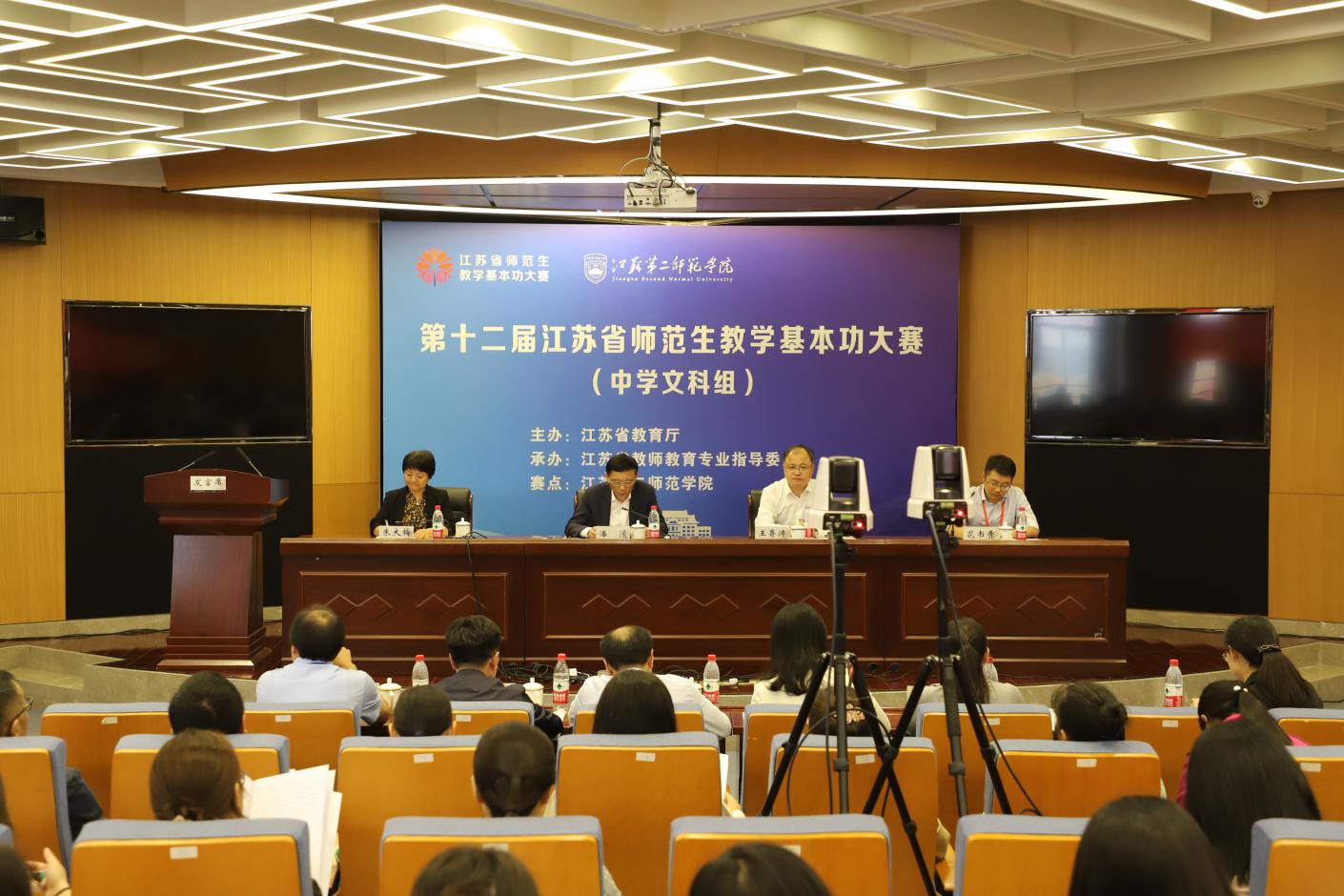 10月27日,第十二届江苏省师范生教学基本功大赛开幕式在江苏第二师范学院举行。本次比赛由江苏省教育厅主办、江苏省教师教育专业指导委员会承办。江苏省委教育工委副书记、省教育厅党组成员潘漫、江苏省教师教育专业指导委员会副主任委员、南京信息工程大学党委常委副校长朱大梅、我校党委书记王鲁沛、副校长花书贵出席大赛开幕式。各参赛高校领队教练和选手,专家和监审代表等参加开幕式。来自全省19所高校的234名参赛选手将在江苏第二师范学院赛点同台竞技、一展风采。