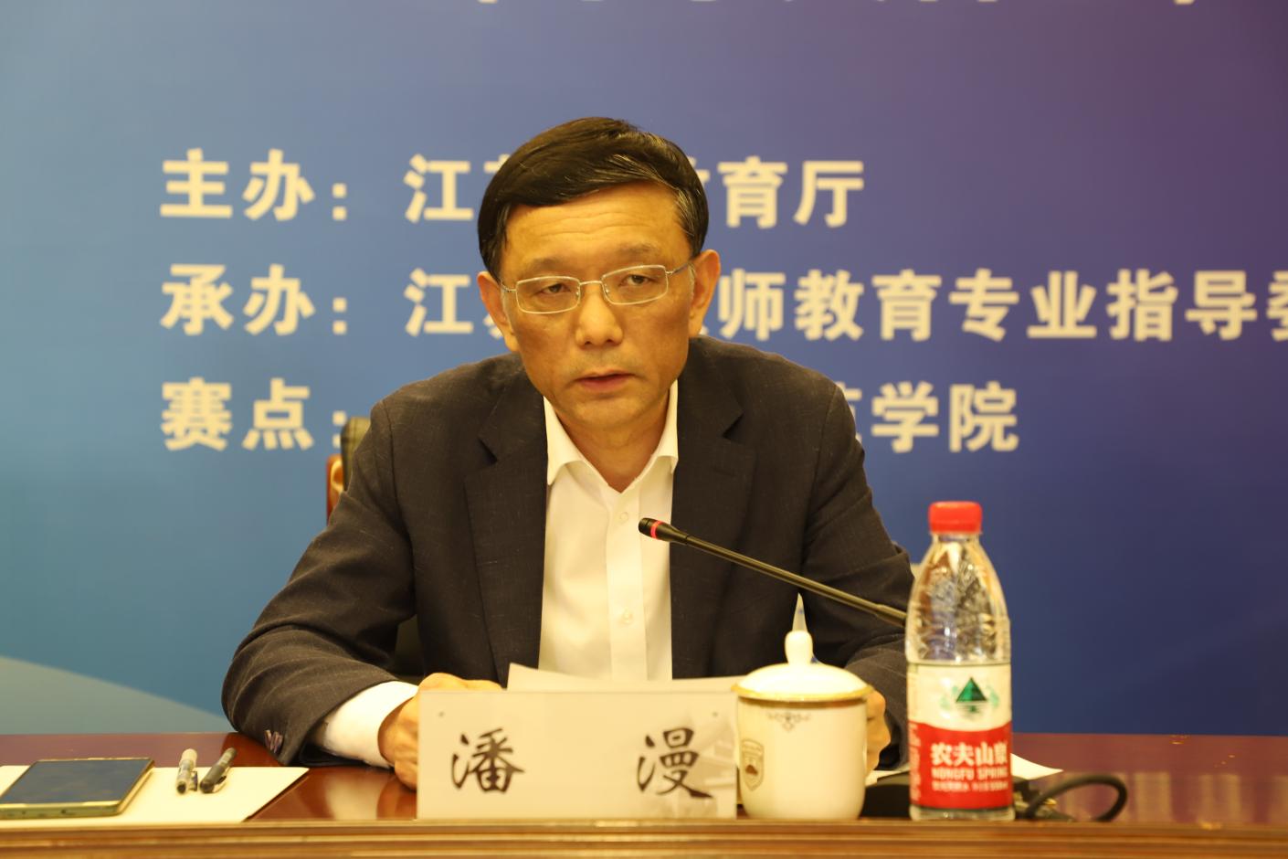 王鲁沛在开幕式上致辞,对各位领导、参赛师生的到来表示欢迎。他简要介绍了我校办学特色和成效,他表示江苏省师范生教学基本功大赛是新时代江苏师范生实践教学的优秀传统,是江苏教育人在师范生培养方面积极探索的成果,更是对教育家精神的有力践行。我校将以此为契机,学习、借鉴各兄弟高校的经验做法,深入推进教师教育改革,努力提升师范生培养质量,为我省基础教育师资队伍建设作出更大贡献。