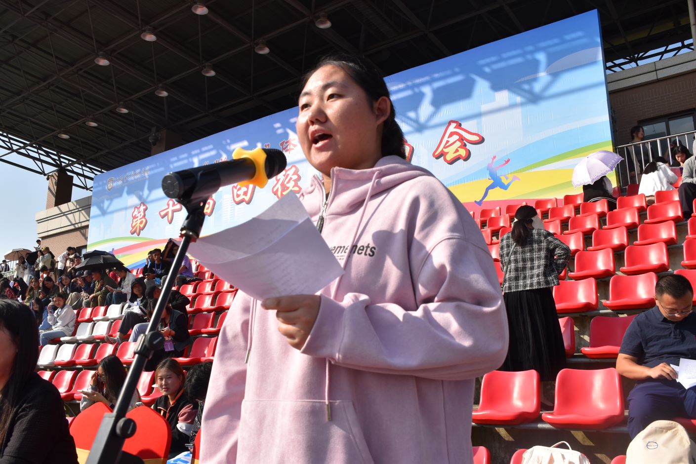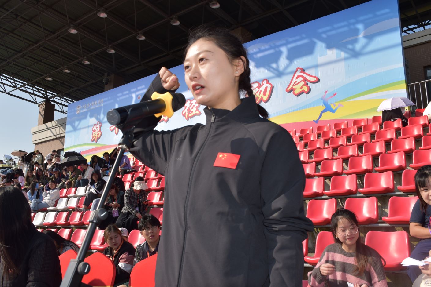运动员代表文学院金雨晴同学、裁判员代表殷菁老师先后庄严宣誓,遵守大赛纪律、公正裁判、文明参赛,确保比赛顺利进行。