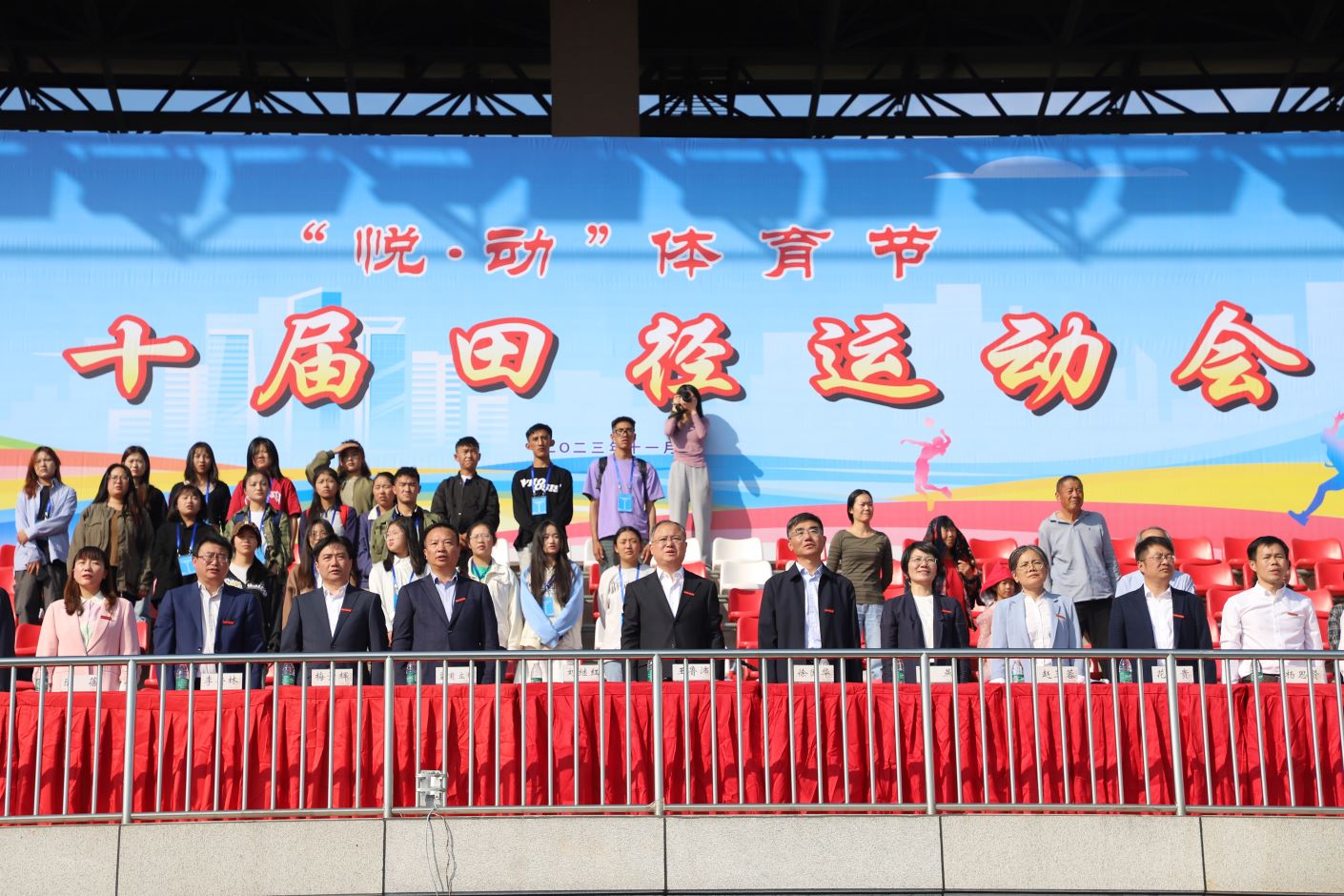 秋风送爽,丹桂飘香;游目骋怀,情舒意畅。11月3日上午,学校在石湫校区体育场举行“悦・动”体育节第十届学生田径运动会暨教职工运动会。青春火热,光影流熠,洋溢的热情驱散了秋风微微的凉意,体育场上座无虚席,师生们怀着激动的心情观看开幕式。党委书记王鲁沛,校长徐国华,校领导刘继红、崔燕、姚振标、皇甫立同、赵玉蓉、梅景辉、花书贵出席。开幕式由校党委副书记、副校长刘继红主持。