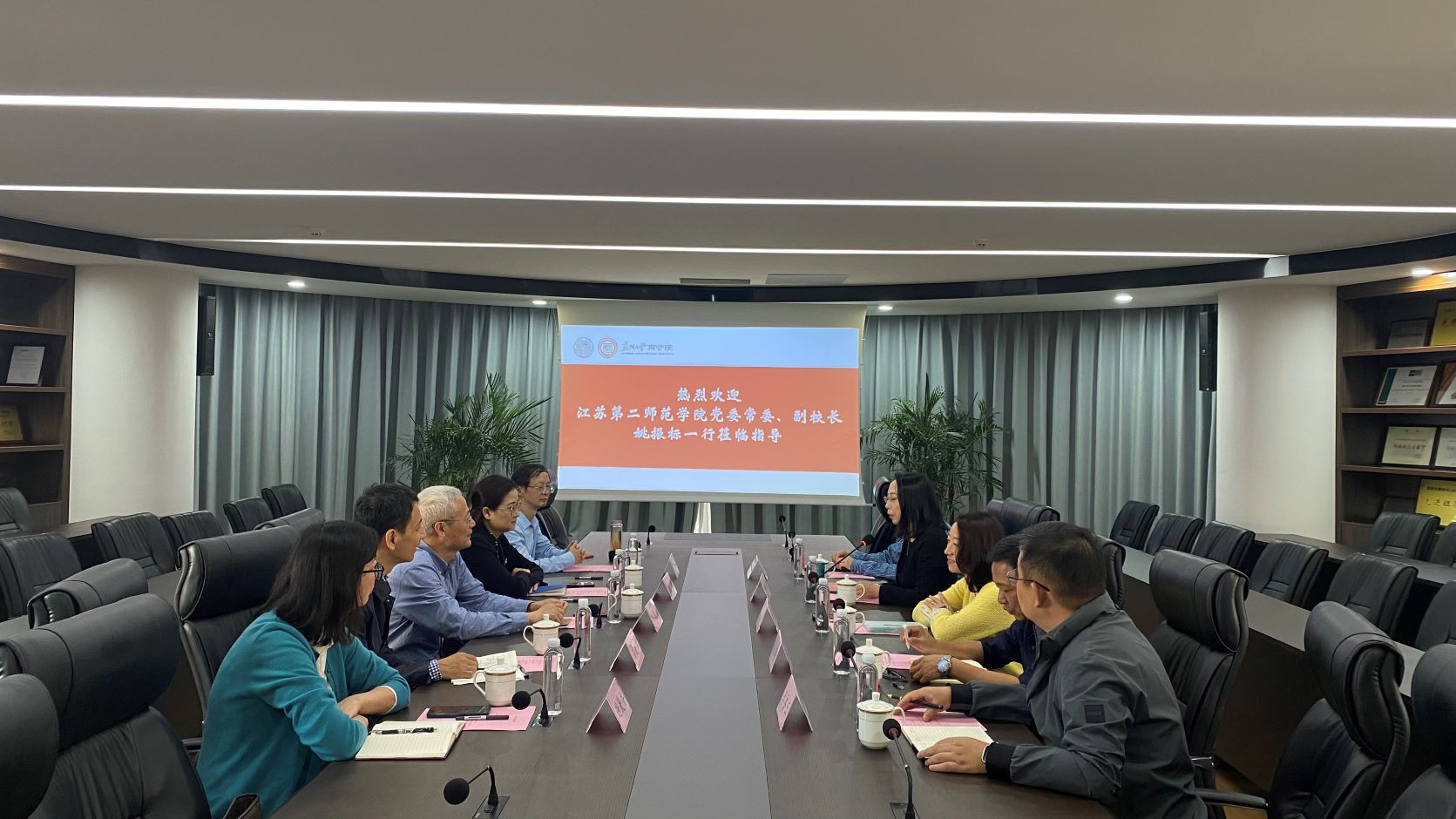 洪晔副校长代表苏州大学对江苏二师调研团的莅临表示欢迎。她介绍了苏州大学的发展历程,并就双方在学科建设、专业发展规划等方面可能存在的合作进行了分析,希望能够以本次调研为抓手,扎实推进相关合作落地做实。