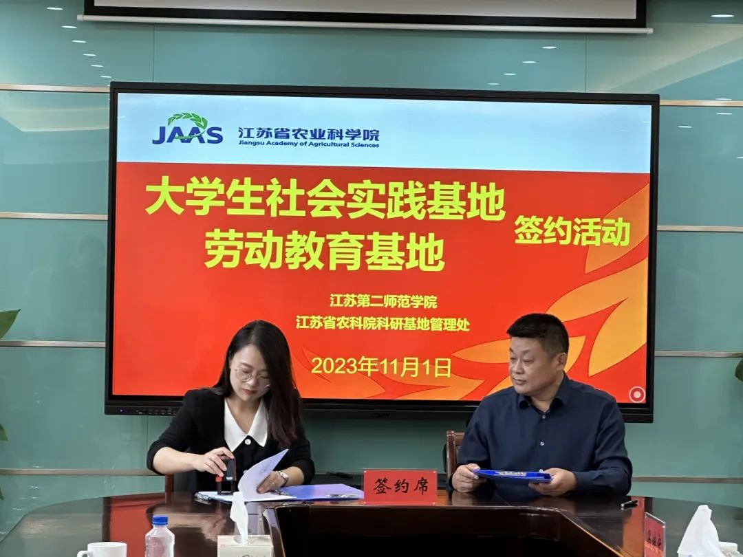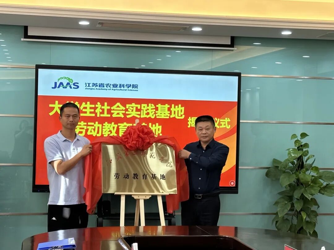 为贯彻落实习近平新时代中国特色社会主义思想和党的二十大精神,围绕落实立德树人根本任务,深入实施“时代新人铸魂工程”,进一步加强我校大学生社会实践和劳动教育基地建设,充分发挥实践教育和劳动教育在立德树人中的重要作用,11月1日下午,校团委书记刘姝,商学院党总支书记张淼,“一站式”劳动教育社区党支部书记丁琼迪一行前往江苏省农业科学院溧水基地,与基地开展关于大学生社会实践和劳动教育座谈会并联合举行揭牌签约仪式,基地管理处处长艾玉春、农科院团委书记李寅秋和相关部门负责同志共同参加仪式。