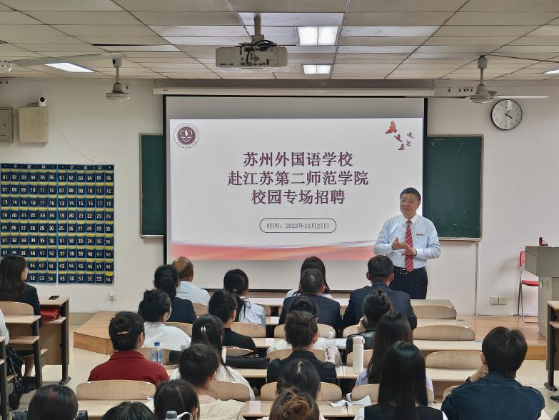 10月27日至28日,苏州外国语学校专招组在我校草场门校区举行二师专场招聘会。本次招聘为我校应届毕业生提供了若干教师岗位,涵盖了幼教、英语、音乐、体育、美术等学科。在前期简历初筛的基础上,专招组对应聘者分学科进行试讲考核,试讲通过的学生进入校长面试环节,最终确定录用人员名单。