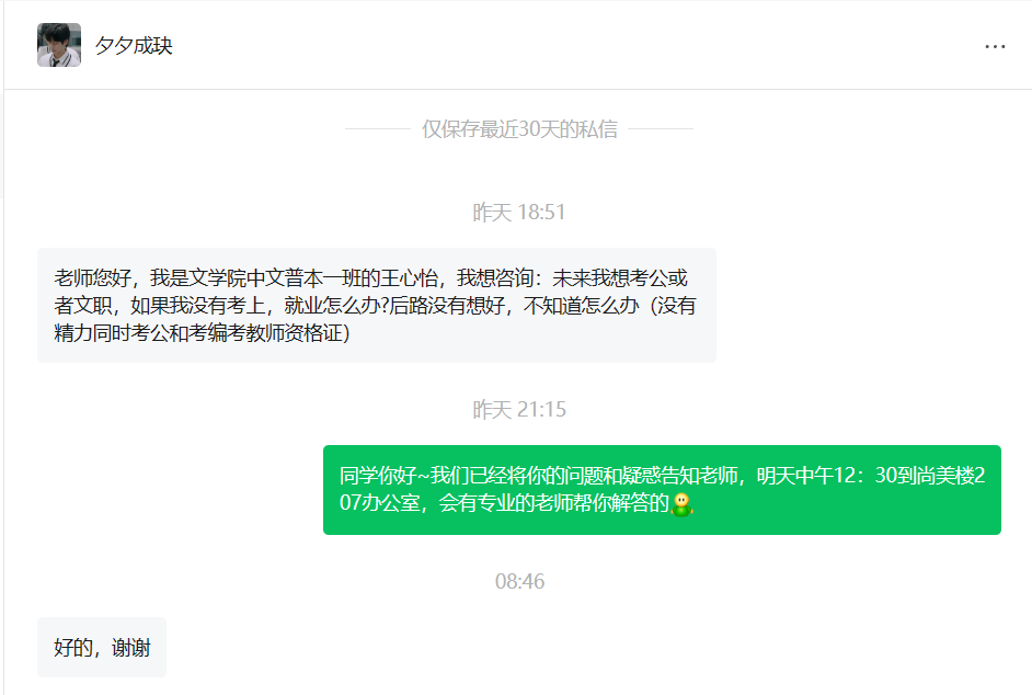 本学期生涯咨询服务正式上线,为学生提供一对一咨询服务。