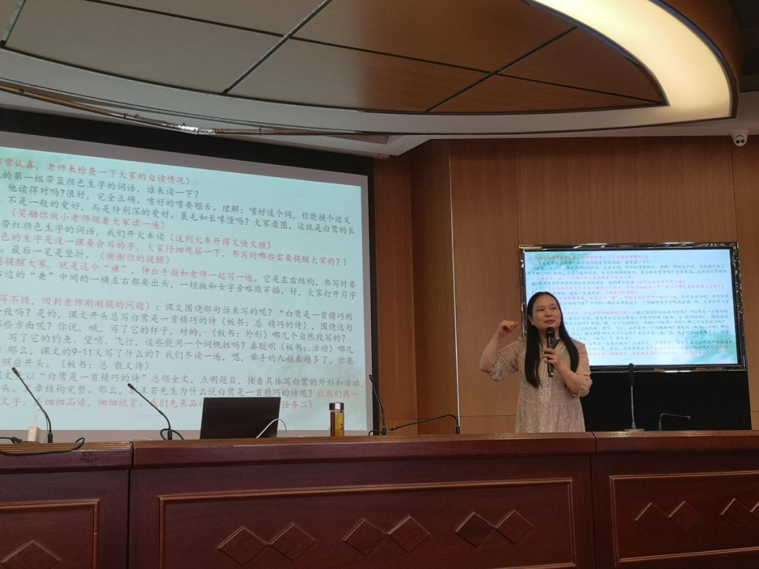 李银芬从考编就业形势分析、考编成功的秘诀、新课标与教材的解读、单篇课文第一课时的教学设计思路四方面做了详细的讲解,并且通过《白鹭》一课做了非常专业的无生试讲示范,并对试讲中的注意事项做了详细的分析与指导。