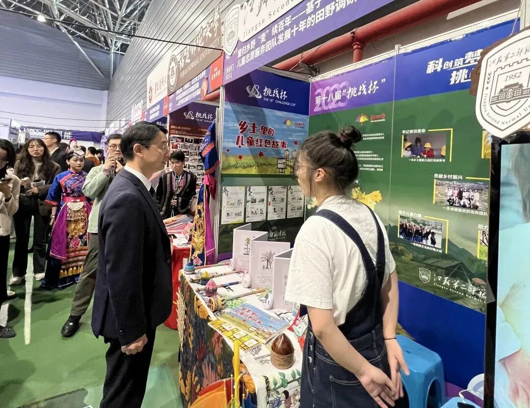 共青团江苏省委副书记熊俊在我校展位与参赛学生交流