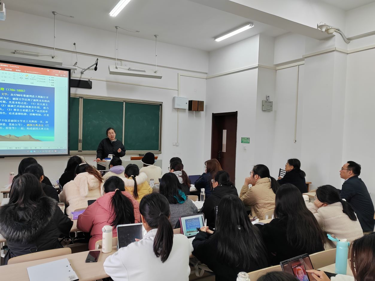 11月15日上午,校党委常委、副校长赵玉蓉走进文学院2021级汉语言文学(师范定向)班的课堂,与同学们共同听了一堂《外国文学》课。作为该班级“1+1+1”工程的“第二班主任”,她表示,希望通过进入课堂听课,深入了解文学院日常教学运行状况,特别是联系班级同学们上课的学习情况,做好与该班后续活动开展的前期了解工作。