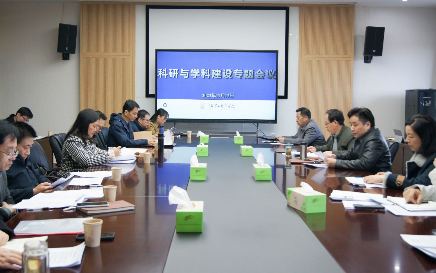 二级学院院长代表作交流发言,汇报各自学院近期国家项目选题推进情况,学科主攻方向遴选,并围绕如何优化科研管理制度提出建议。