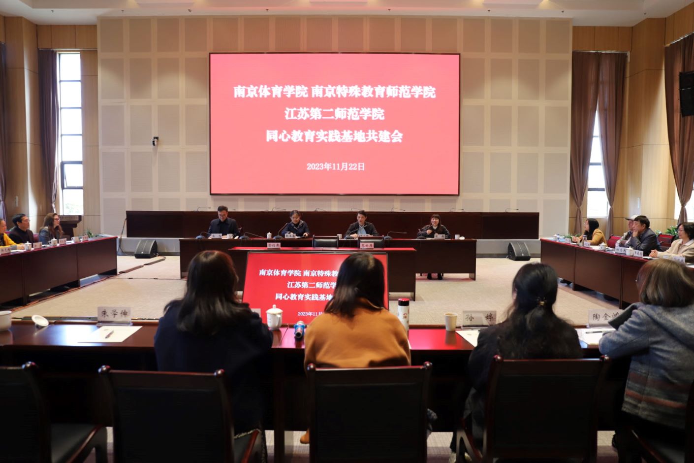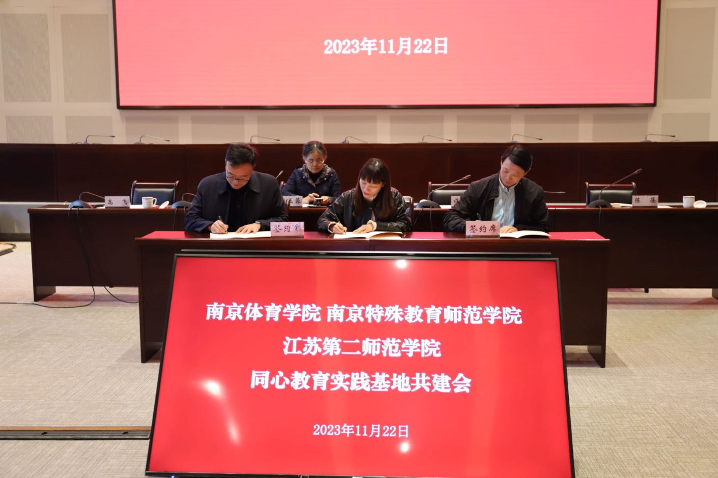 为贯彻落实党的二十大精神和习近平总书记关于做好新时代党的统一战线工作的重要思想,推动落实中央和省委统战工作会议精神,11月22日上午我校在石湫校区敬业楼107与南京体育学院统战部、南京特殊教育师范学院统战部举行了共建同心教育实践基地协议签约仪式。党委常委、副校长赵玉蓉,南京体育学院党委常委、宣传部部长、统战部部长许立俊,南京特殊教育师范学院党委常委、统战部部长、学生工作部(处)部(处)长高飞,我校党委常委、党委统战部部长陈蓓及三校民主党派及统战团体成员代表出席会议。会议由陈蓓主持。