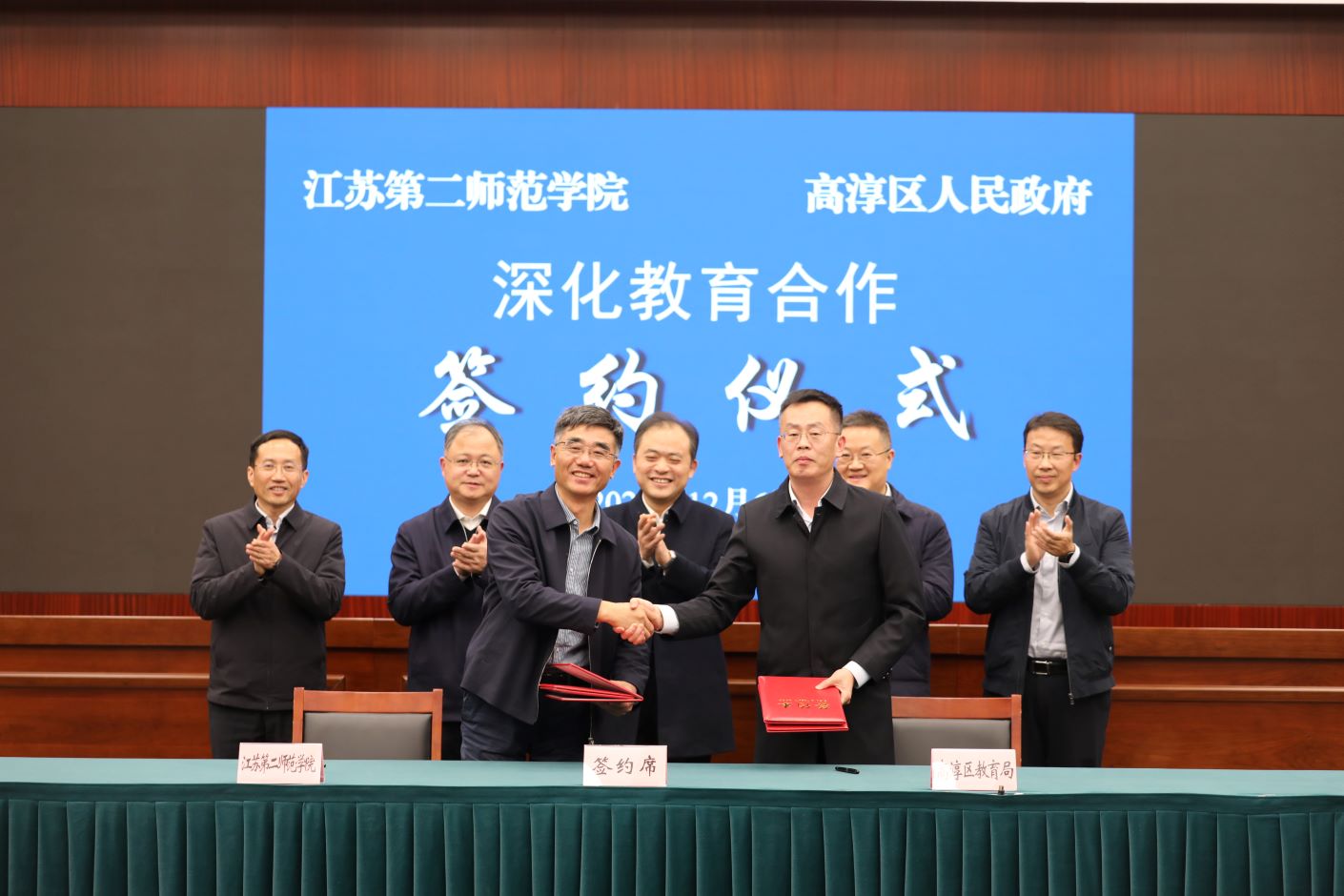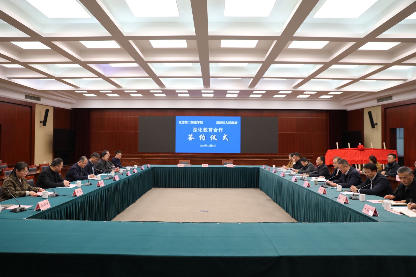 12月6日,我校与高淳区深化教育合作签约仪式在高淳区人民政府会议厅举行。党委书记王鲁沛、校长徐国华、高淳区区长蒋冰、副区长邱峰、南京市教育局规划处处长周晨、高淳区教育局局长刘海军等出席仪式。仪式由高淳区委常委、宣传部长杨勇主持。