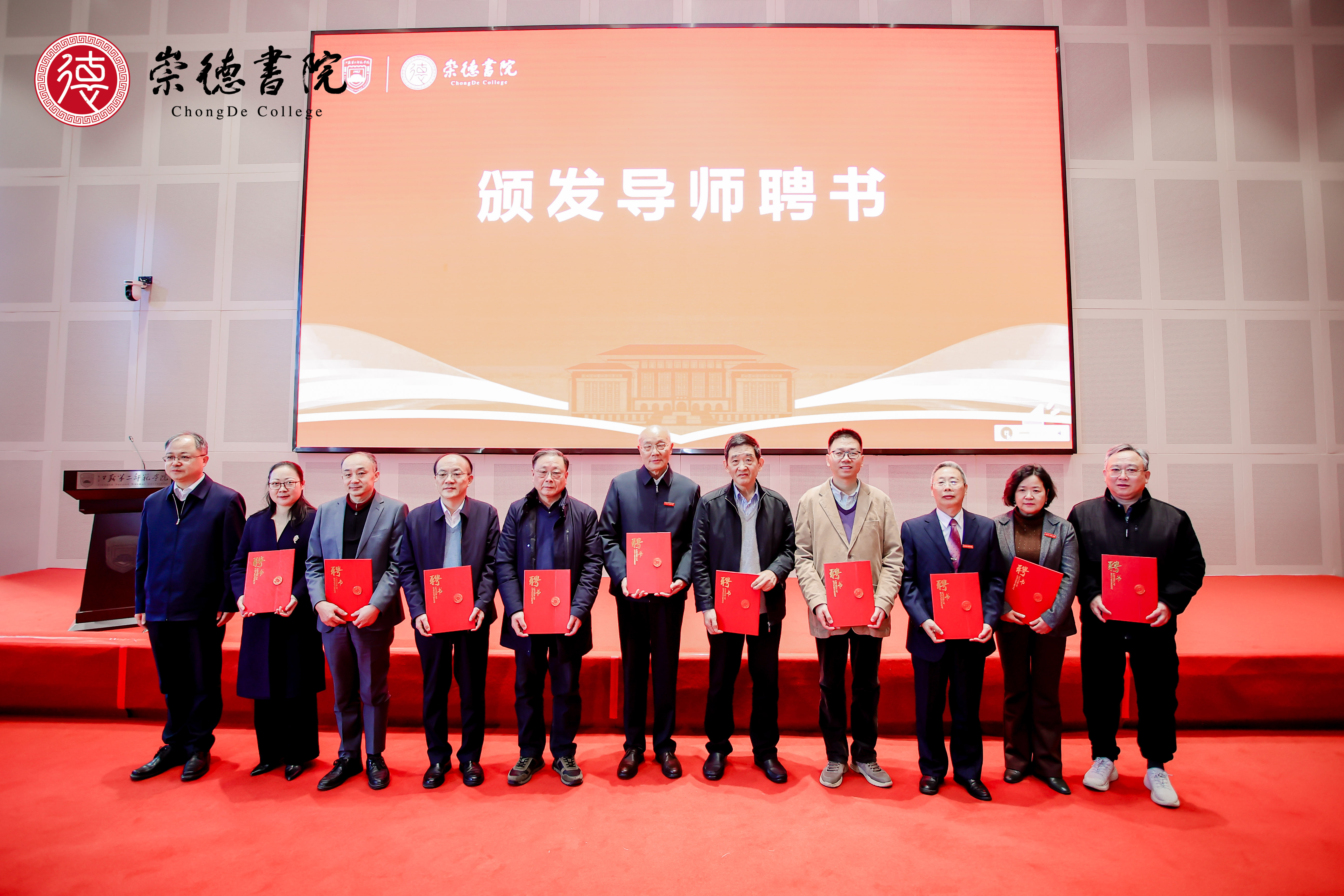 校党委副书记、副校长刘继红宣布了崇德书院的导师团队,王铁军、杨九俊、兰保民、徐林祥、董少校、缪宏才、刘美文、刘守旗、尹坚勤、周龙军共十位专家学者任特聘导师,赵建春任名誉导师。