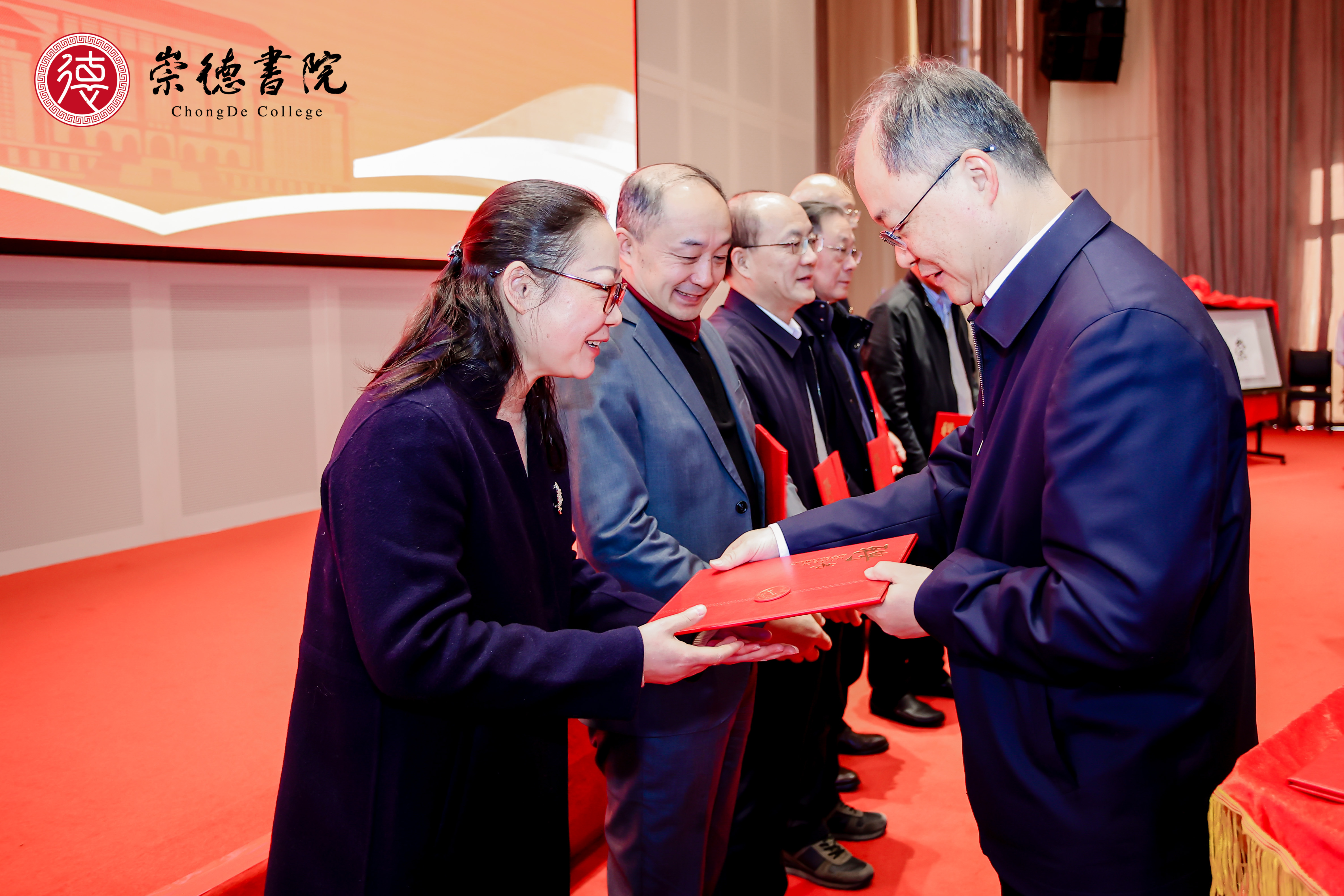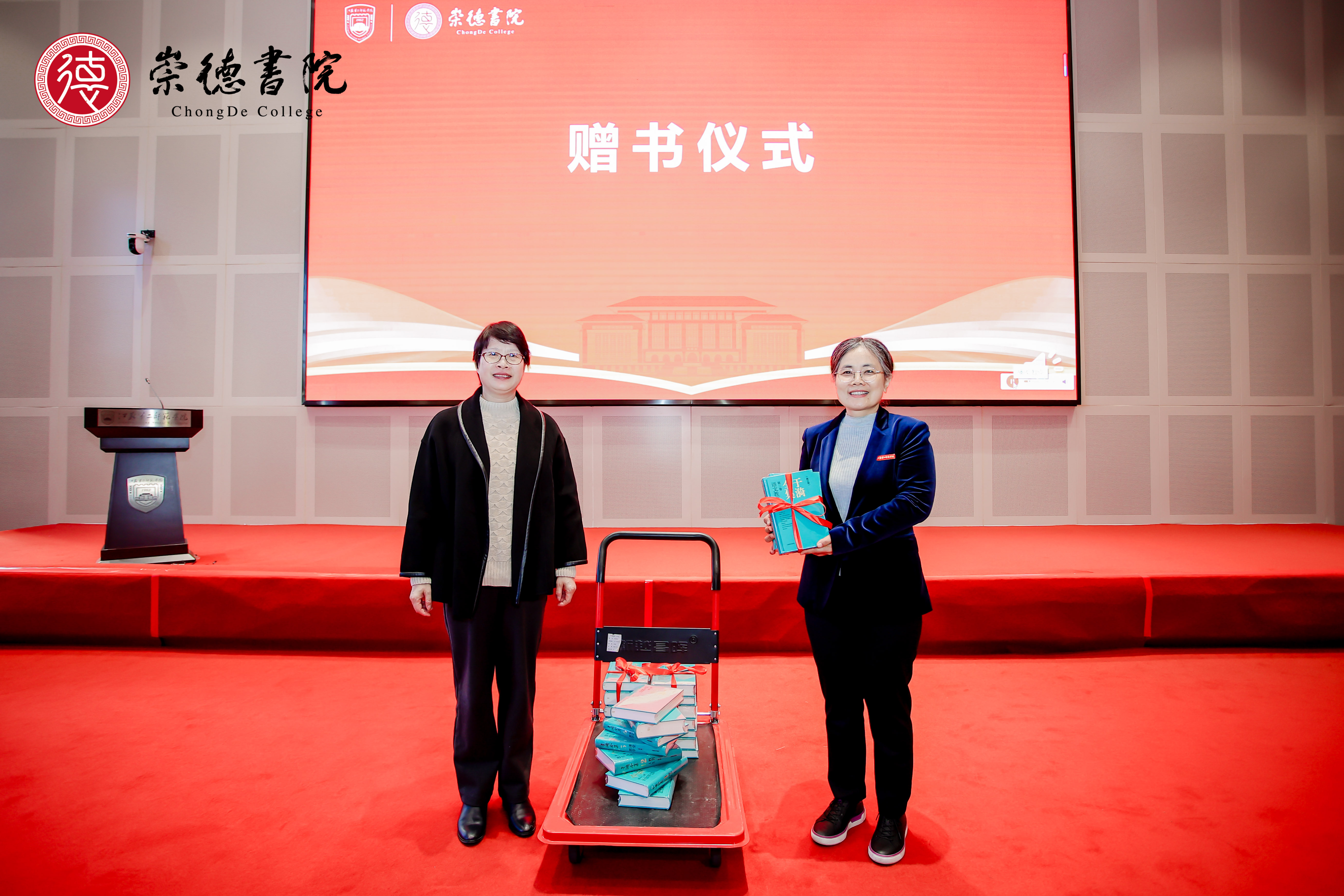 上海教育出版社党委书记顾晓菁向崇德书院成立表达祝贺,并向崇德书院赠送了《于漪全集》(修订版)书籍。副校长赵玉蓉接受捐赠并颁发捐赠证书。