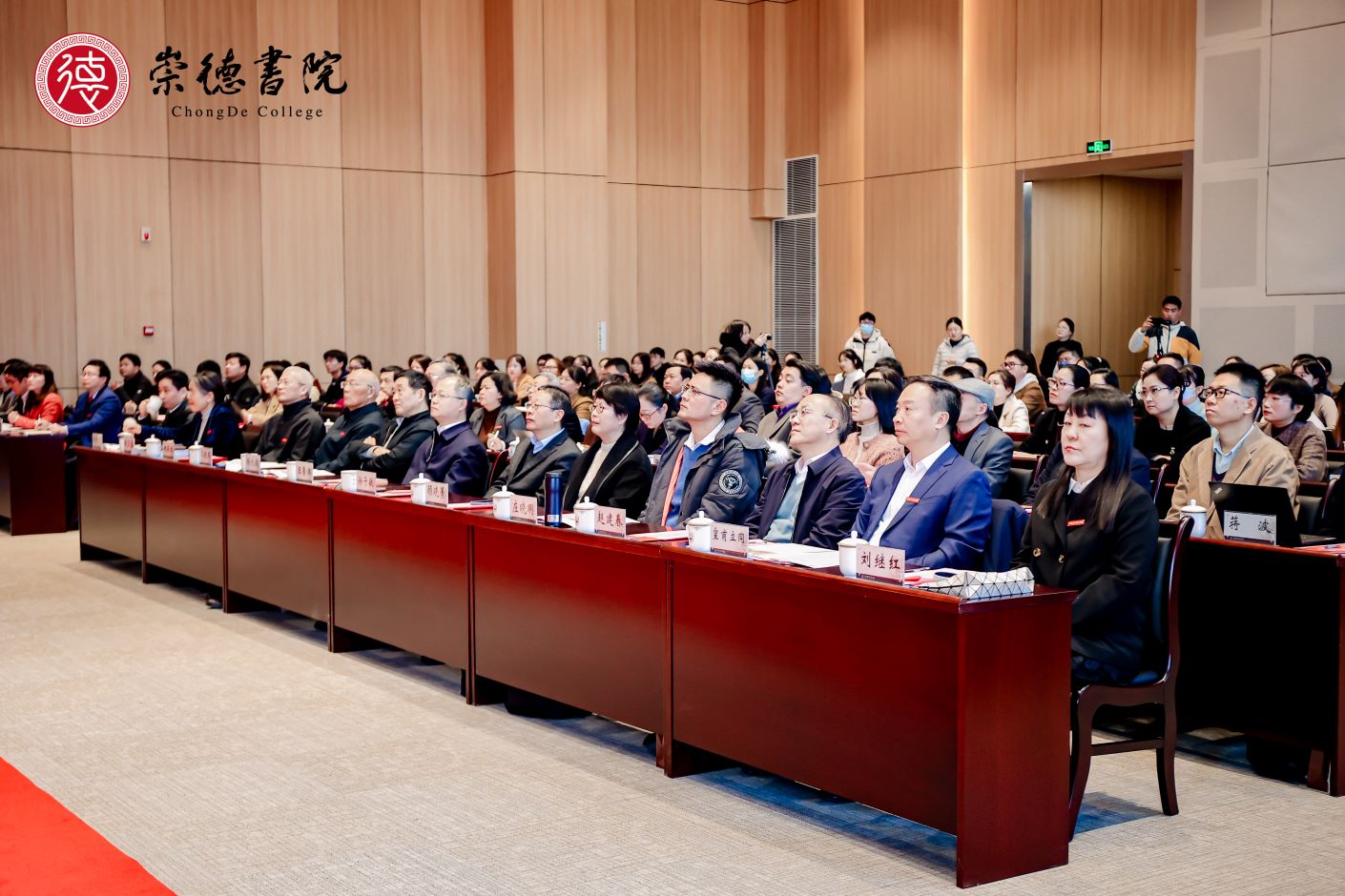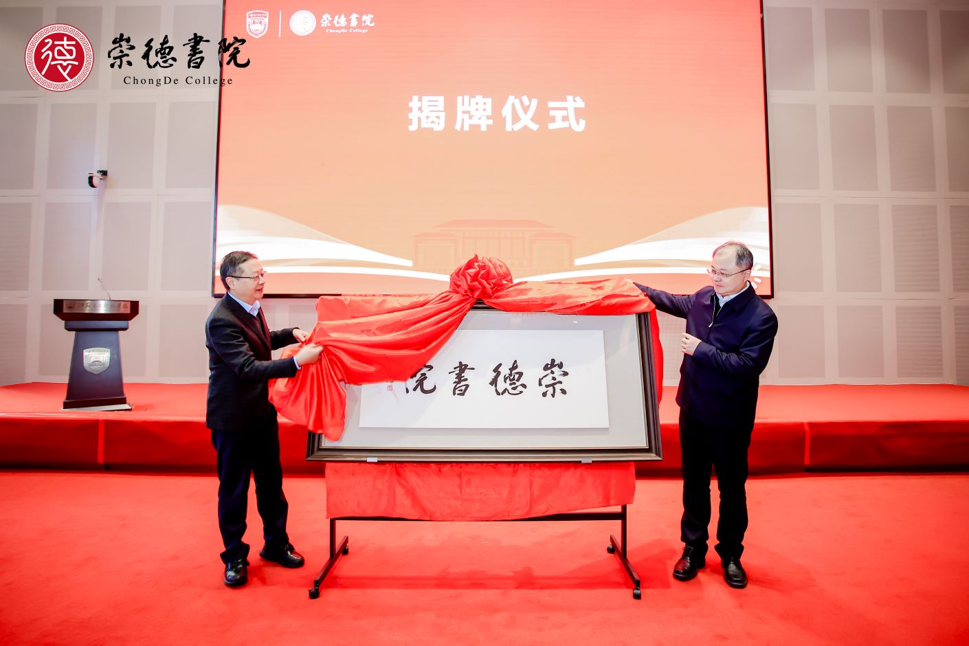 “崇德弘道,躬耕创新”。12月8日,我校在石湫校区敬业楼举行崇德书院成立揭牌仪式。江苏省教育厅一级巡视员徐子敏,上海教育出版社党委书记顾晓菁,上海教育出版社副社长庄晓明,上海教育出版社报刊分社社长、《语文学习》杂志执行主编、《于漪全集》总统筹易英华,上海教育出版社教育培训公司总经理张弛,上海教育出版社教辅分社副社长刘美文,上海教育出版社营销部主任朱丹瑾,江苏省教育科学研究院研究员、江苏省教育学会名誉会长杨九俊,江苏教育报刊总社总编辑、中国期刊协会教育期刊协会副主任委员赵建春,全体在宁校领导以及来自沪苏两地的专家学者出席本次活动。相关二级学院和职能部门负责人,师生代表参加了活动。