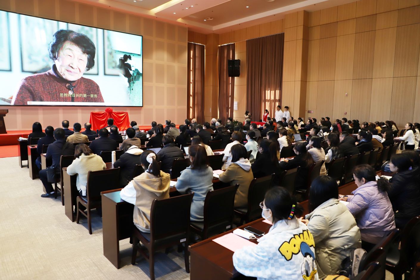 在崇德书院揭牌成立的激动人心时刻,荣誉院长于漪先生发来祝贺视频。她指出,书院将秉持为党育人、为国育才的使命担当,全面贯彻党的教育方针,将莘莘学子培养成为教师队伍中坚力量,为优秀教师队伍建设,为中国特色社会主义教育高质量发展做出新的更大的贡献。她希望崇德学子们不断创新发展,传承弘扬中华优秀传统文化,打下为人、为学、为师的扎实基础,励志做“躬耕教坛、强国有我”的教育家型好老师。