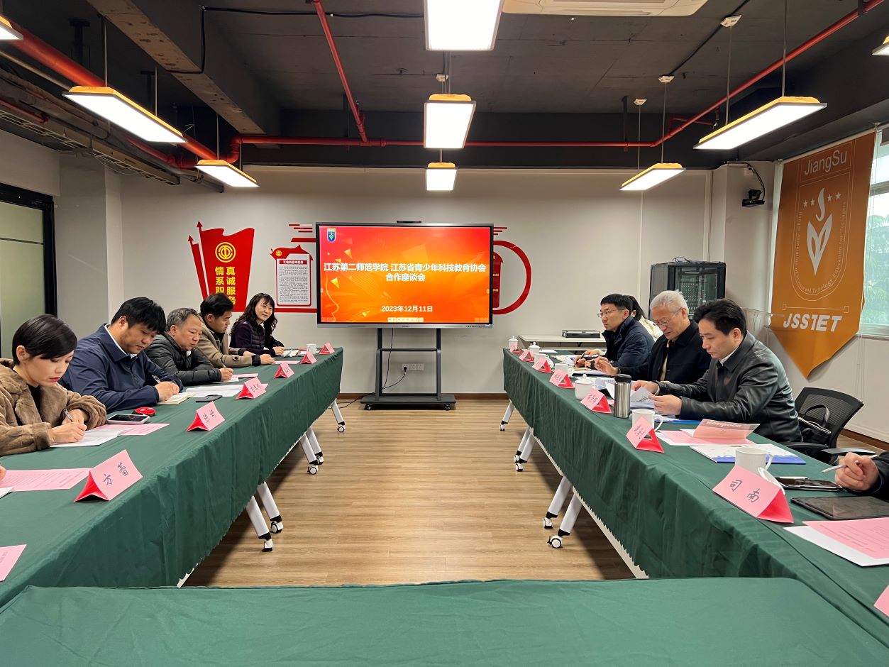 12月11日,副校长姚振标、梅景辉率队赴江苏省青少年科技教育协会洽谈教育合作。