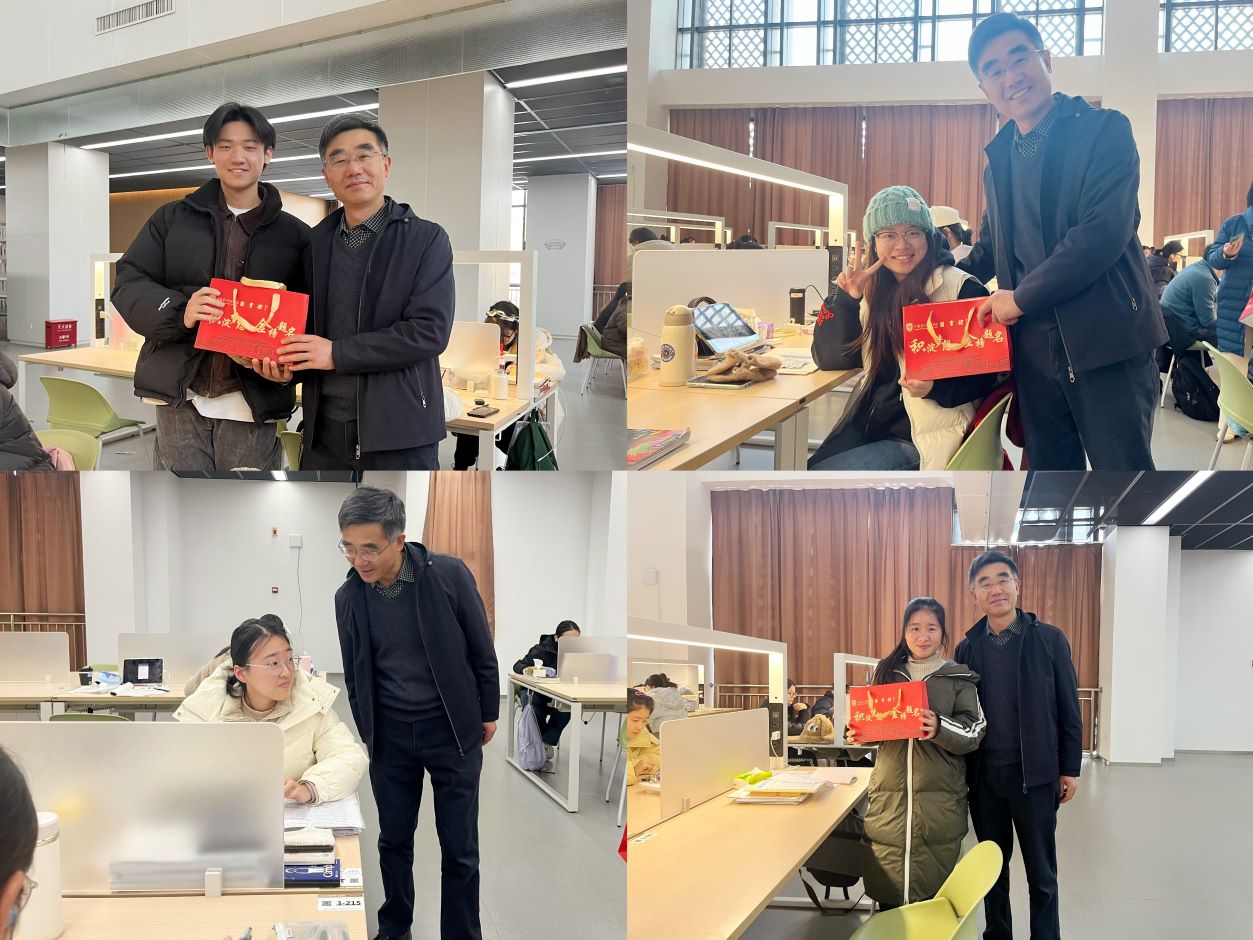 近年来,学校高度重视学生考研升学工作,此次走访慰问让学生再次感受到学校的人文关怀,相信同学们会以更加坚定的信念、更加充足的干劲迎接挑战。为助力学生成长成才,图书馆通过延长开放时间、提供学习资料存放地、设立诵读专区等多项举措,营造良好的学习氛围,为广大考研学子提供更好的服务。