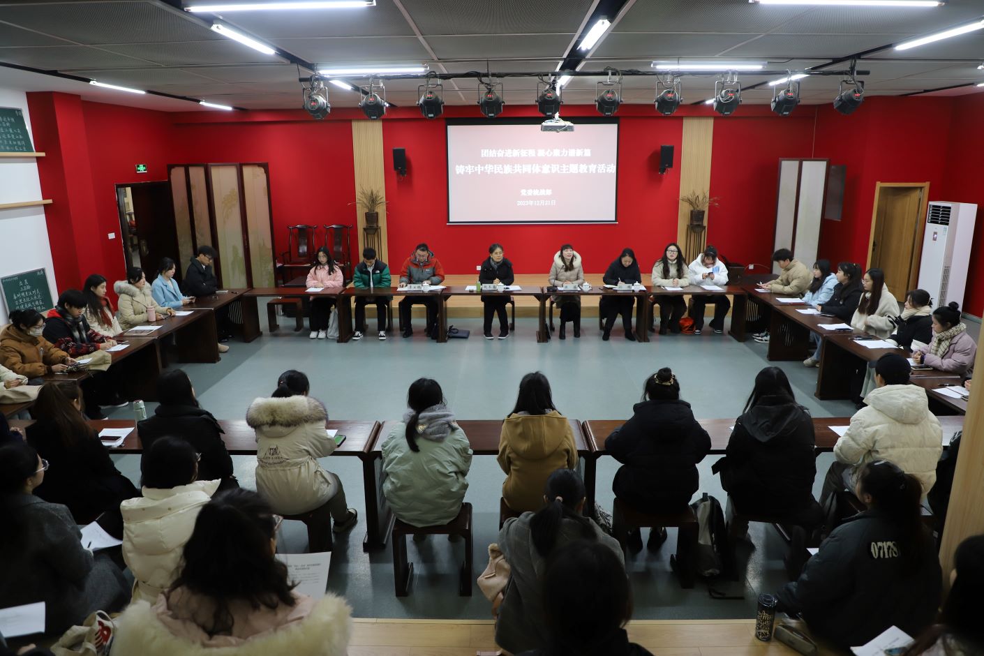 为认真学习贯彻习近平总书记关于加强和改进民族工作的重要思想,把铸牢中华民族共同体意识教育实践活动贯穿办学治校的全过程,12月21日上午,我校在“同心·传承”教育实践基地举办铸牢中华民族共同体意识主题教育活动。校党委常委、副校长赵玉蓉,党委常委、党委宣传部部长李安林、大学生艺术教育中心主任孙婷出席活动,各二级学院及大学生艺术团部分师生代表参加活动,活动由党委常委、党委统战部部长陈蓓主持。