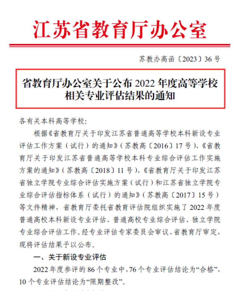 近日,江苏省教育厅办公室发布《省教育厅办公室关于公布2022年度高等学校相关专业评估结果的通知》(苏教办高函〔2023〕36号),我校科学教育专业顺利通过江苏省本科新设专业评估。