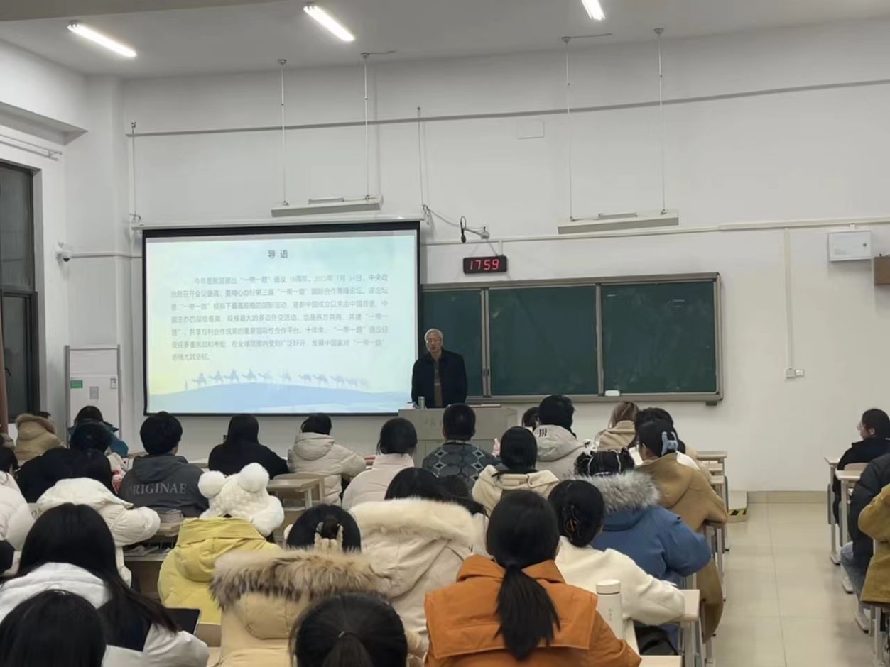 副校长姚振标以《“一带一路”倡议提出十周年:成就与展望》为主题,以党的二十大报告中关于“一带一路”倡议的阐释为引,深入回顾了“一带一路”倡议提出与蓝图擘画的历程,深刻总结了“一带一路”倡议十年来取得的五方面的丰硕成果,即为全球经济发展注入动力;惠及沿线国家;完善全球治理体系;增进文明交流互鉴;推动人类可持续发展。他强调,虽然倡议取得了丰硕的成果,但要进一步推动高质量的发展,必须要在精耕细作、凝聚共识、夯实平台,共建标杆等方面继续努力。