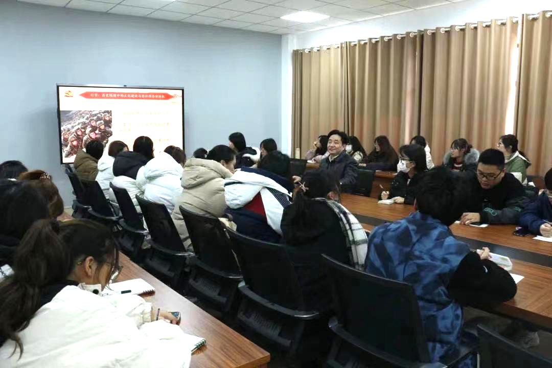 副校长梅景辉以《习近平文化思想:文化自信与文化领导权的当代发展》为主题,从“历史隧道中的文化建设与意识形态领导权”导入,以英、美两国争夺世界霸主的手段为例,分析了以文化人、价值引领的深刻意义。他指出,要从“新时代文化自信的历史坐标”“文化自信与领导权”“马克思主义意识形态领导权的思想逻辑”三个角度深刻理解当代中国在树立文化自信、建设文化强国上应有的立场和态度,既一脉相承又与时俱进,突出工具理性的联合和价值理性的凝聚。