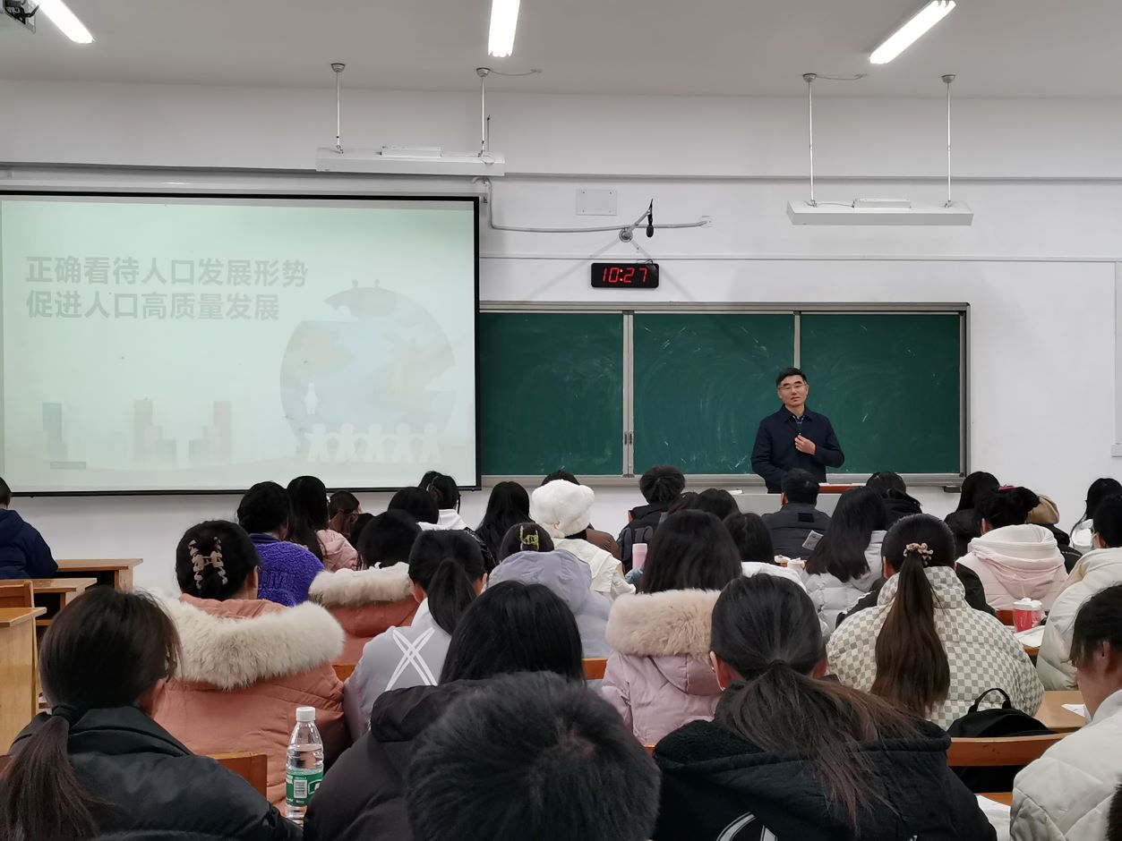 校长徐国华以《正确看待人口发展形势 促进人口高质量发展》为主题,围绕“正确看待中国人口发展形势”“把人口红利转变为人才红利”“促进中国人口高质量发展”三方面内容展开论述。他指出,当前我国人口发展形势表现为出低生育率已逐步形成,人口负增长;老龄化程度不断加深;劳动年龄人口持续减少;人口迁移流动更加活跃,必须通过吸引人才、留住人才;提高综合生育率;开发老年人力资源;借助制度用好人才等若干方面才能推动人口红利向人才红利转变。他强调,要进一步促进我国人口高质量发展应当在全面提高人口综合素质;完善生育支持政策体系;增加全社会劳动力有效供给;积极应对人口老龄化等方面下真功夫,下苦功夫。