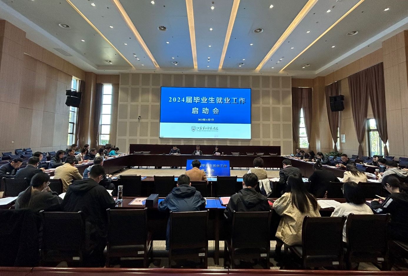 招生就业工作提质增效。从社会需求角度出发,推动“招生—培养—就业”联动工作机制,不断提高学校人才培养和社会发展需求的契合度。落实就业“一把手”工程,树立“大就业观”,把毕业生就业工作摆在突出重要位置,纳入学校领导班子重要议事日程,建立健全党委书记、校长亲自部署,分管校领导靠前指挥,各二级学院领导落实推进,各部门协同推进,全校共同参与的工作机制。坚持市场导向,深入推进书记校长和二级学院负责人“访企拓岗”。