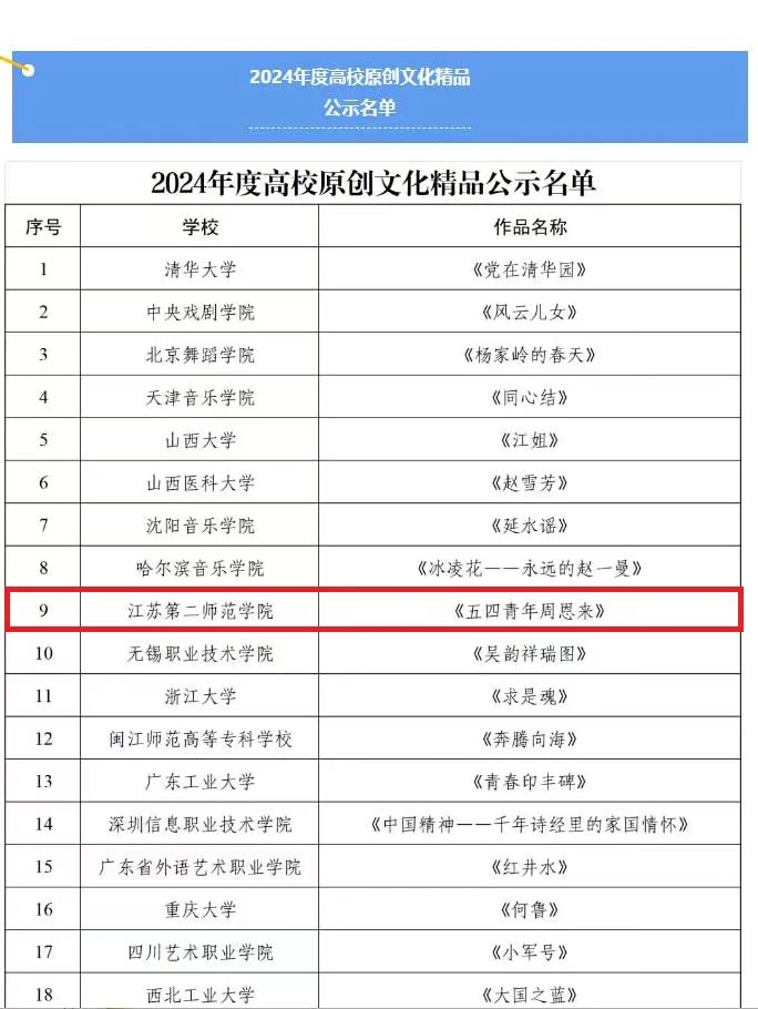 江苏省教育厅公布了省第七届大学生艺术展演获奖结果,我校选送艺术表演类、学生艺术实践工作坊、艺术作品类和高校美育改革创新优秀案例40个作品,在各组激烈的角逐中,共获得特等奖3项、入选全国1项、一等奖13项、二等奖8项、三等奖13项、优秀创作奖5项、优秀组织奖1项,获奖数量和质量均创历史新高,位于全省同类高校前列。