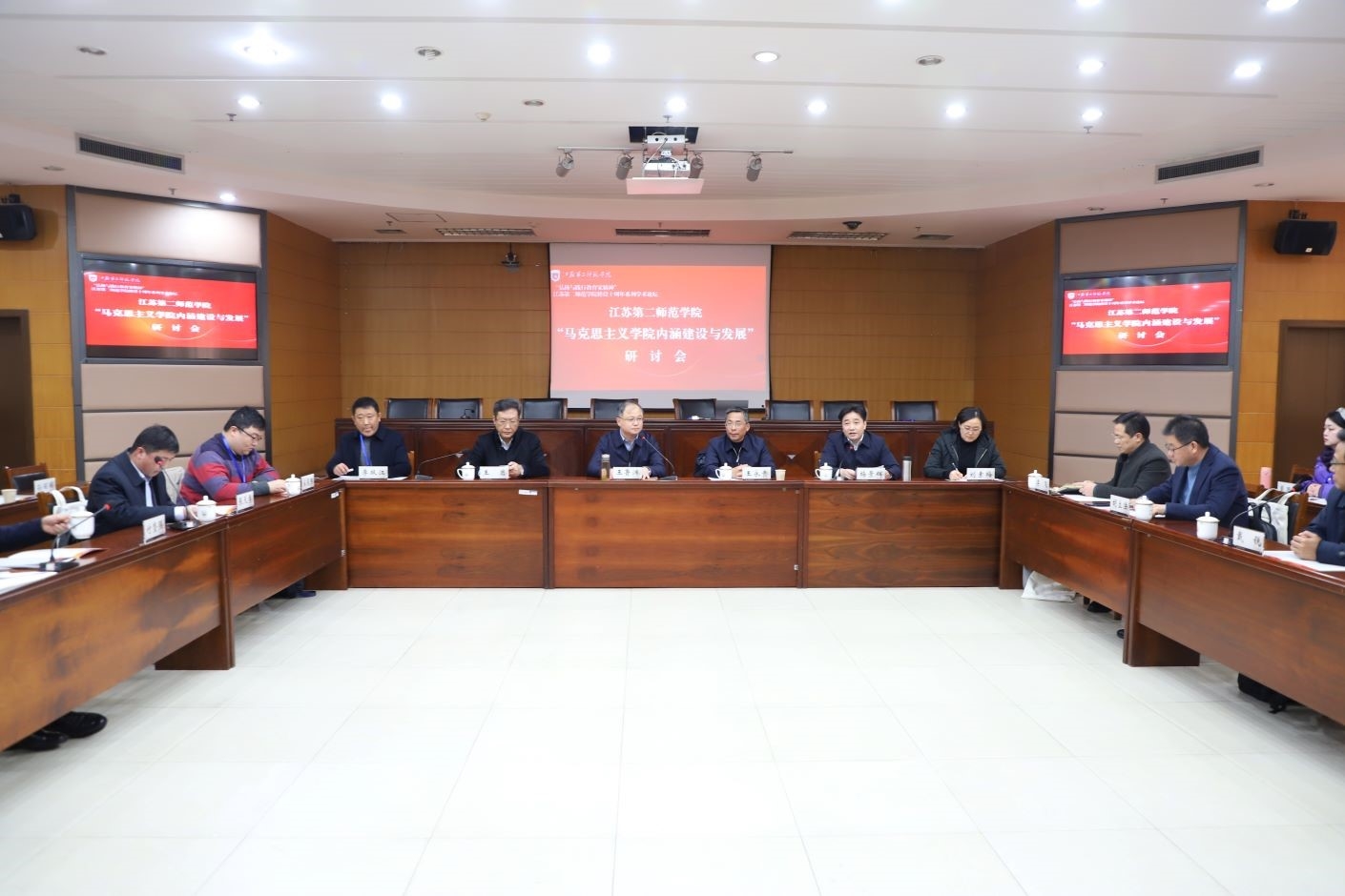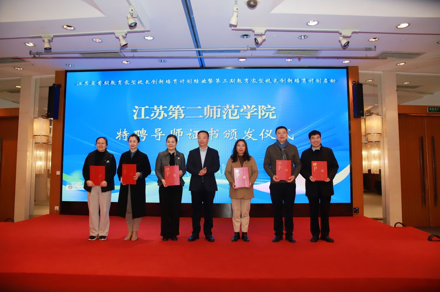 完善师德师风建设工作机制,制定出台《江苏第二师范学院“铸魂崇德”强师行动计划》。坚持“师德师风”第一评价标准,严格落实新进人员入职准入查询制度,将师德考核嵌入职称评审、职务晋升、评奖评优等常规工作。成立人才工作领导小组,制定出台《江苏第二师范学院“梧桐计划”实施办法》,建立校级人才培育和支持体系。加大人才招聘频次,完善机制、优化流程。坚持“请进来”和“走出去”并重,双管齐下,助推高质量招才引智。聘请教育专家为我校“特聘教授”,推动学科专业建设和人才培养等工作,助力学生成长成才;聘请江苏省首期教育家型校长创新培育计划培养对象为我校“特聘导师”,建立与中小学协同培养师范生机制,促进学生教育实践能力提升。