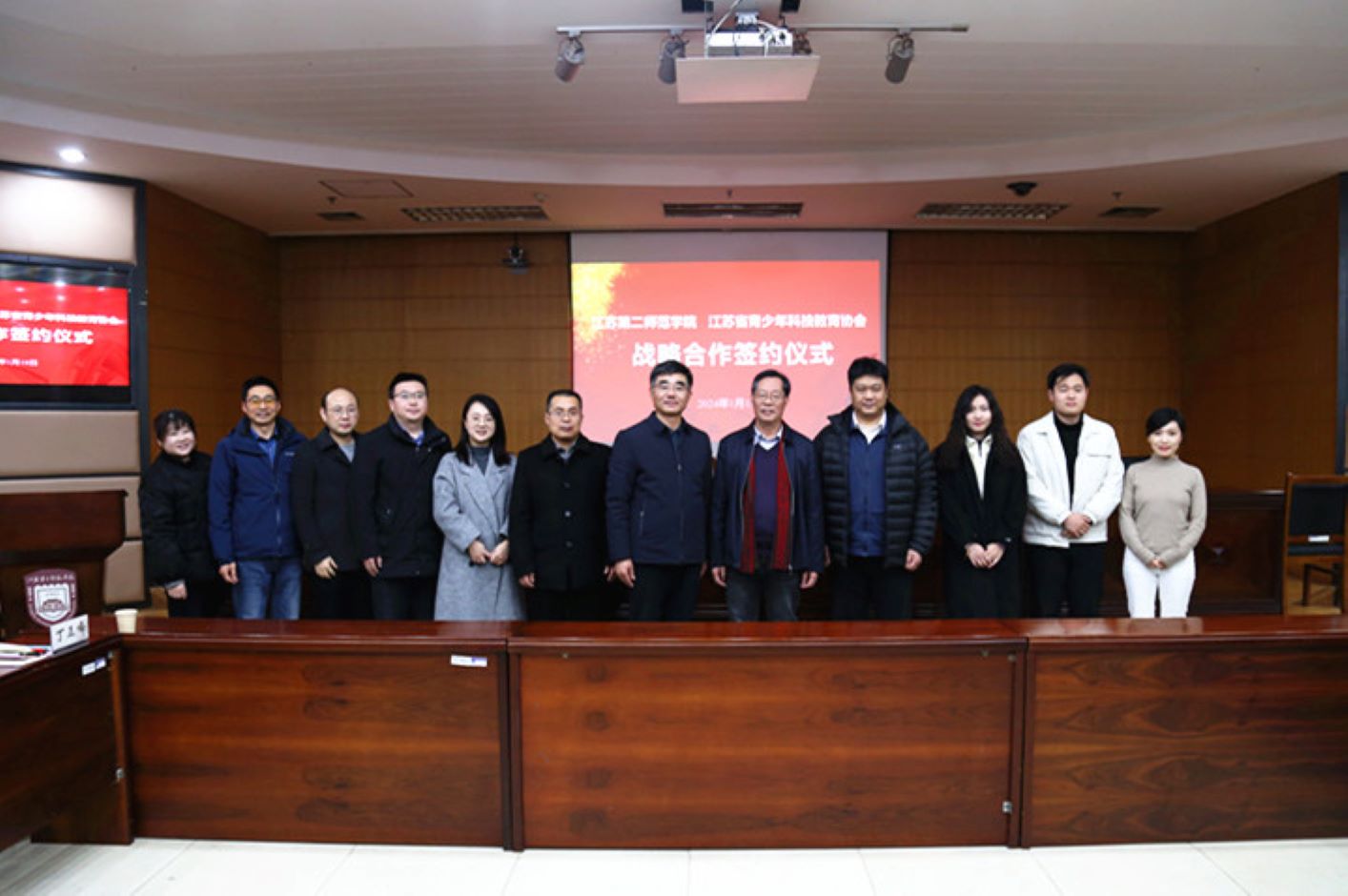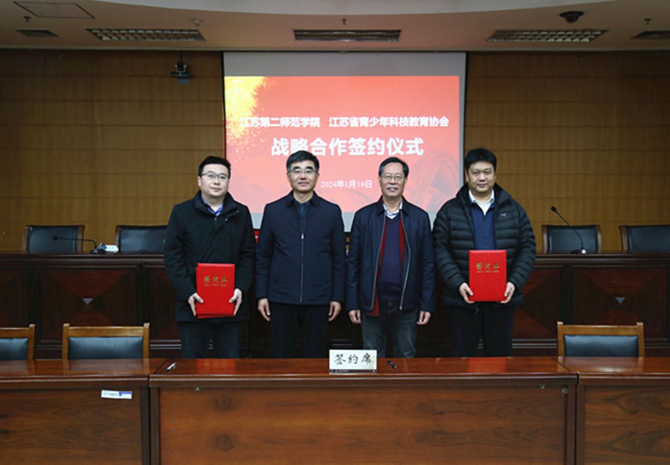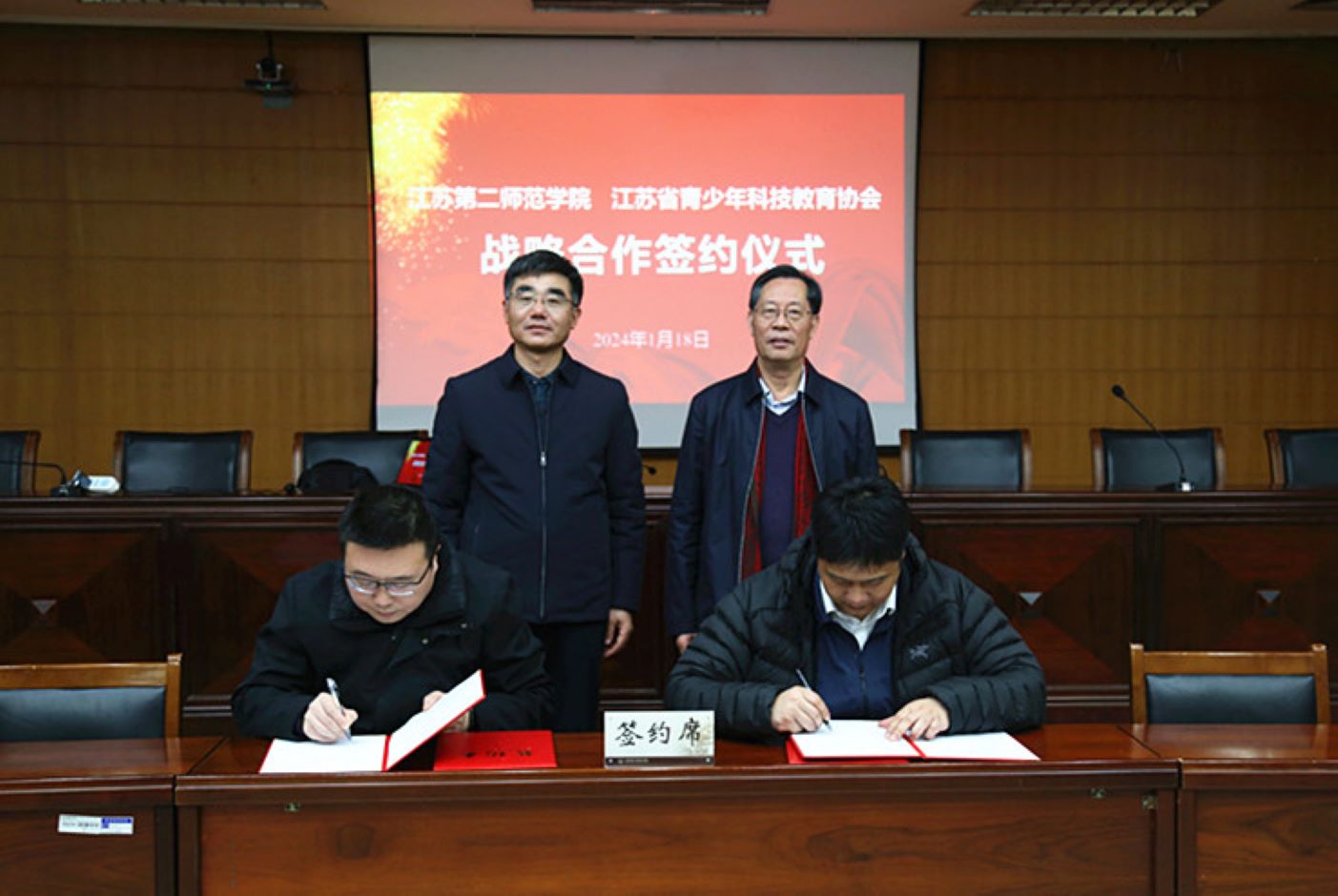 1月18日,我校与江苏省青少年科技教育协会战略合作签约仪式在草场门校区举行。校长徐国华、省青少年科协理事长宋永忠和双方有关部门负责人出席仪式,仪式由发展办副主任丁媛主持。