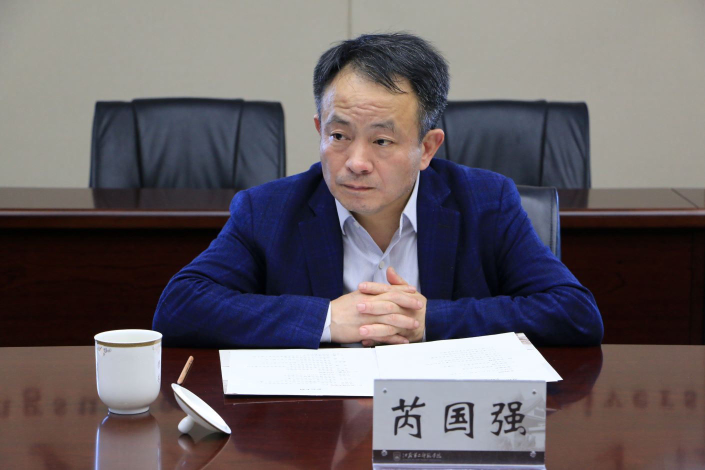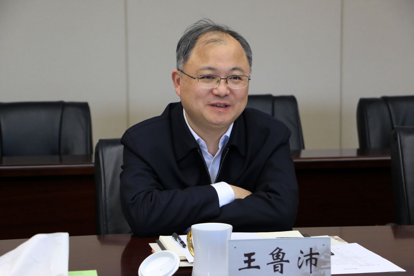 王鲁沛致欢迎辞,代表学校对芮国强一行的到来表示热烈欢迎。