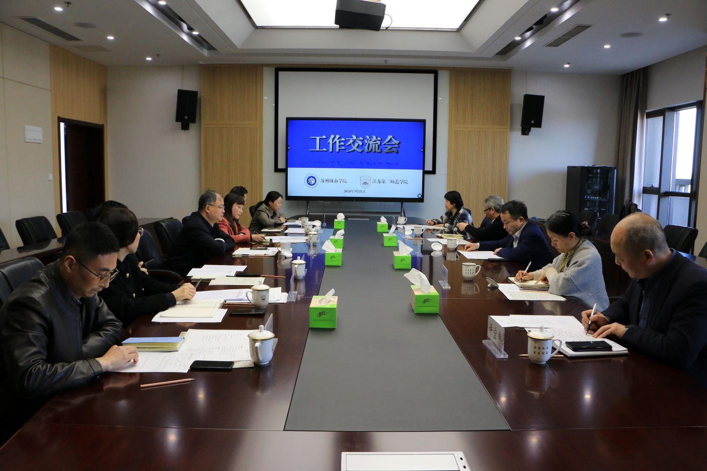 3月21日下午,苏州城市学院党委书记芮国强一行五人来我校访问交流,我校党委书记王鲁沛在石湫校区接待来访客人,党办校办、统战部、人事处、发展办、学科办、科研处等相关部门负责人参与座谈。会议由王鲁沛主持。